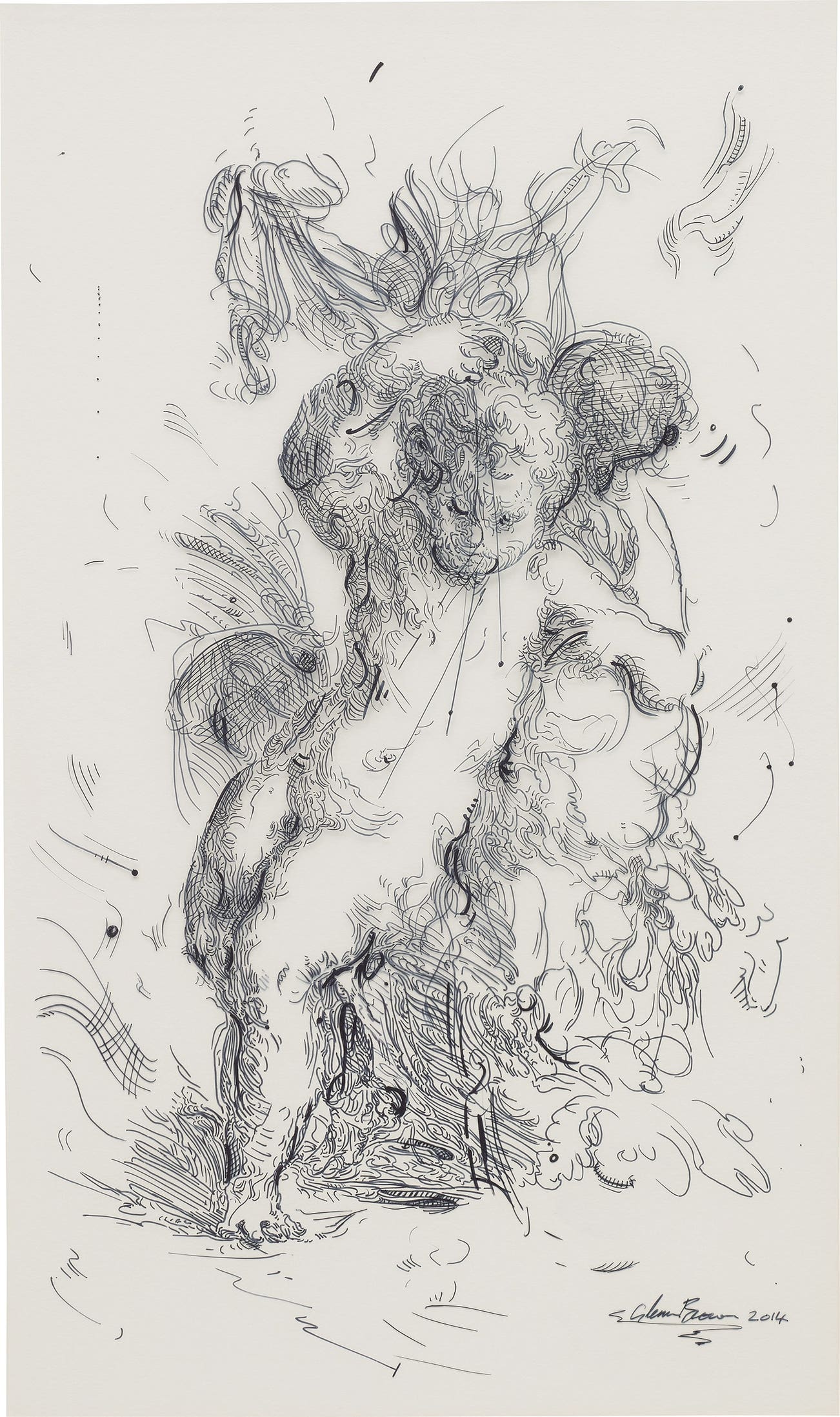 signed and dated ‘Glenn Brown 2014’ lower right; further signed 'Glenn Brown' on the artist's label affixed to the backing board