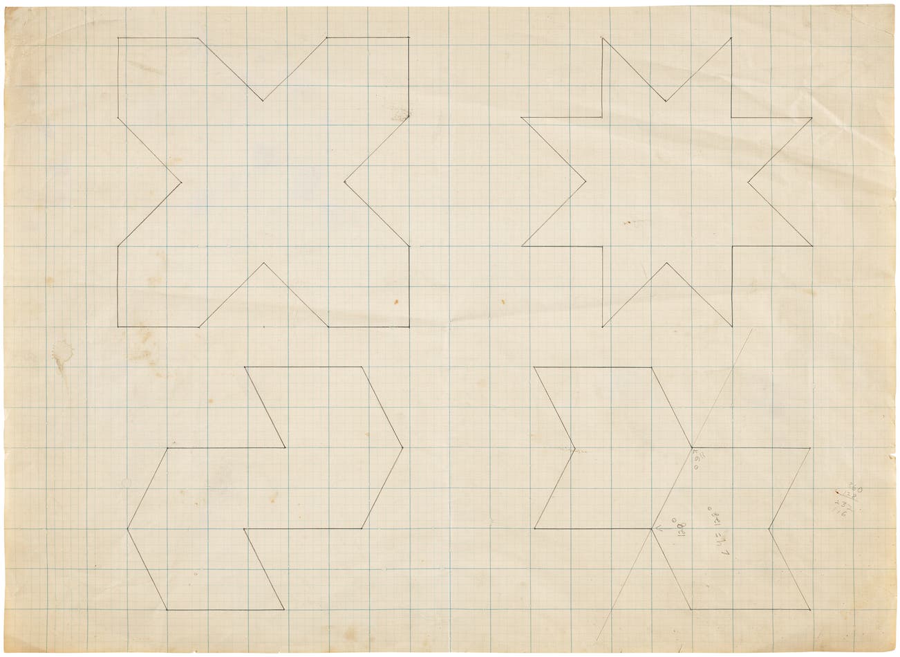 The images of this study relate to a selection of Stella’s Dartmouth Paintings, made during and near the time of Stella’s artist-in-residenceship at Dartmouth College in 1963: the connected V shapes of Dade City and Polk City, the eight-pointed stars of Plant City and Port Tampa City and the cross shapes of Haines City and Tampa (Lawrence Rubin, Frank Stella, Paintings 1958-1965: A Catalogue Raisonné, 1986, cat nos. 210-215).