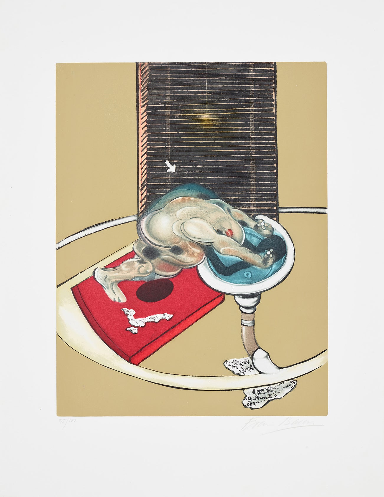 In conversation with yet challenging the conventions of Modern art, Bacon was known for his triptychs brutalizing formalist truths, particularly Three Studies for Figures at the Base of a Crucifixion, which Bacon debuted in London in 1944, and Three Studies of Lucian Freud, which became famous when it set the record for most expensive work of art at auction at the time it sold in 2013.