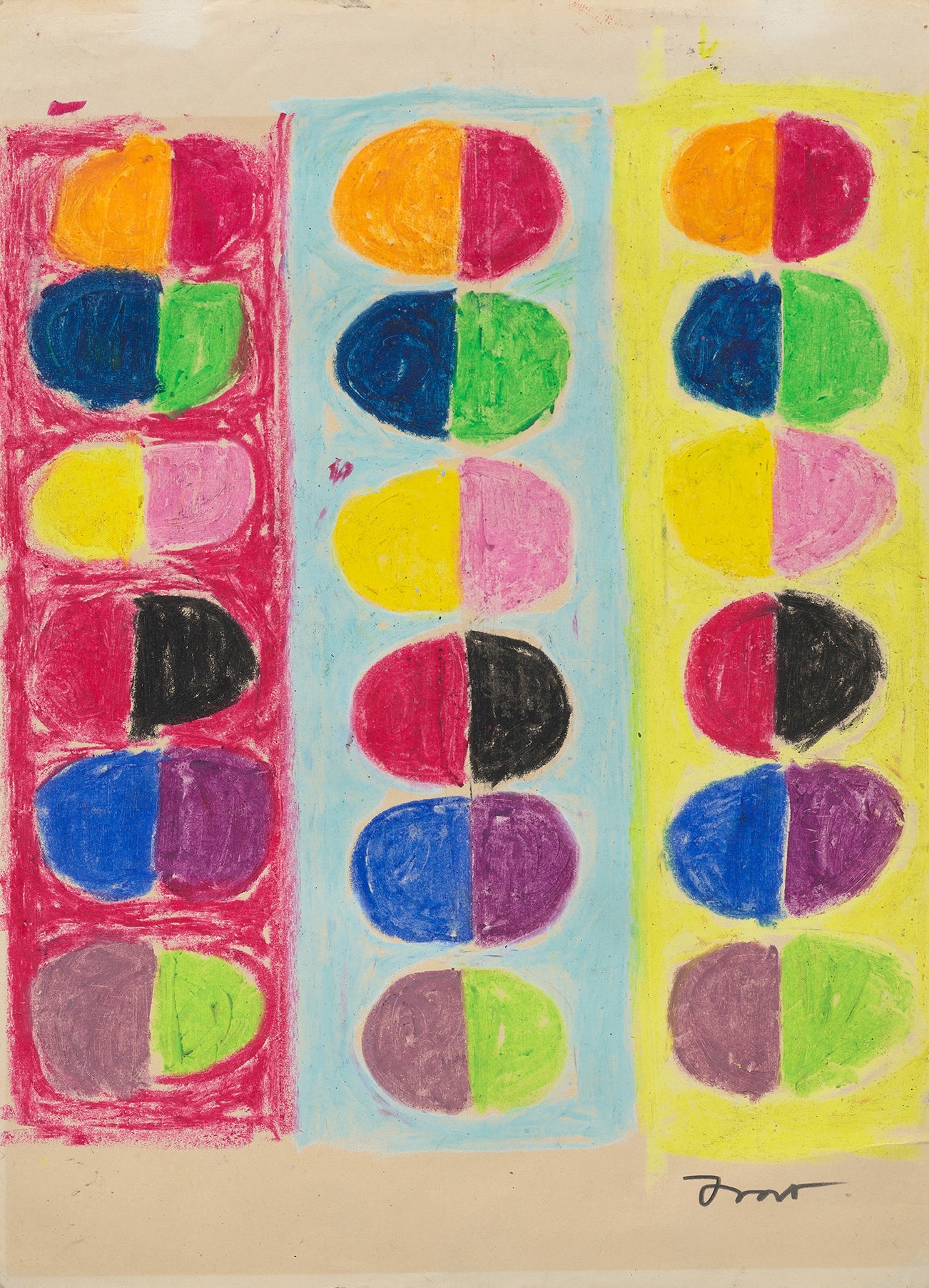 款識:Frost(畫面)Terry Frost, circa 70/71, Colour on Red Yellow & Blue(畫背)