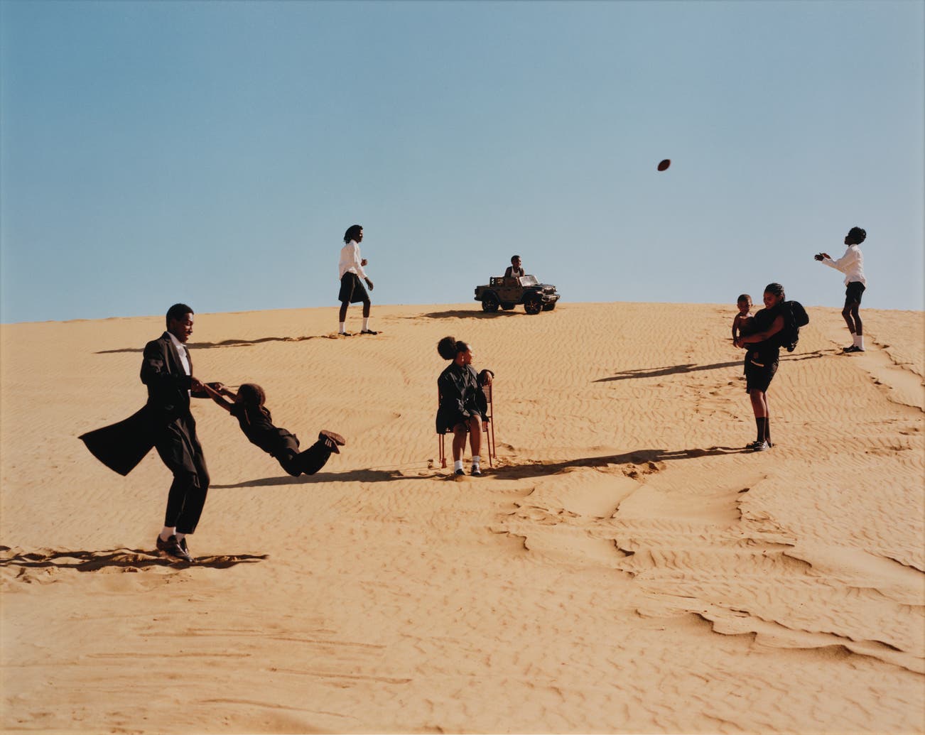 AmericanTyler Mitchell is known for his vibrant, musical images of Black leisure. He depicts his subjects in utopic settings, bathed in the light of a perpetual summertime golden hour. Mitchell offers a counter-possibility to mainstream representations of Blackness, motivated by “an urgency to visualize Black people as free, expressive, effortless, and sensitive.” His photographs are cinematic and fluid, bringing a sense of play to the boundary between fashion and fine art photography.