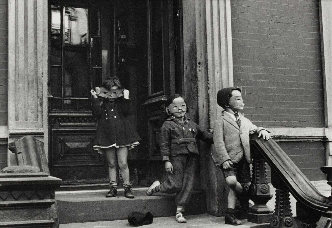 《紐約(門廊上戴著面具的孩子)》