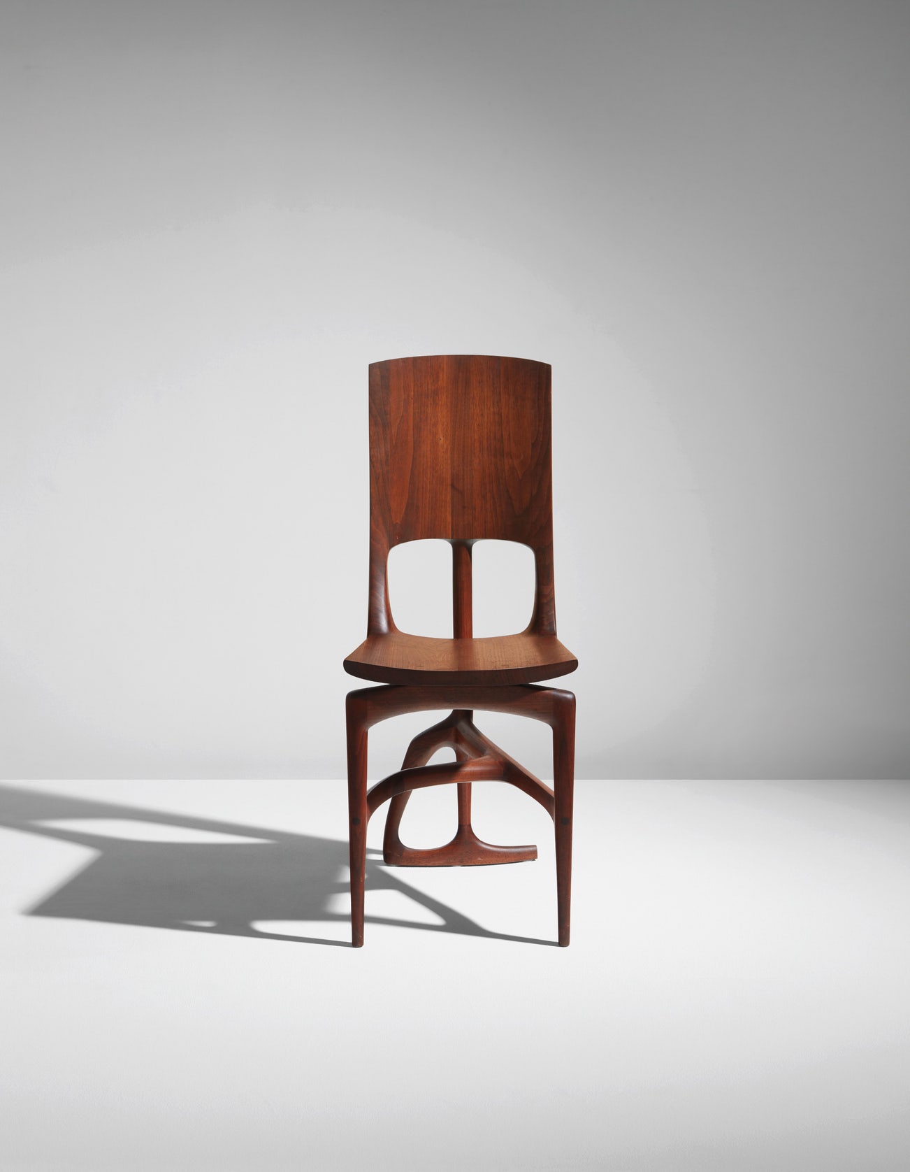 Please note that this chair was signed by Wendell Castle after its creation with the incorrect date of manufacture. This lot is accompanied by a letter from Wendell Castle explaining this discrepancy.