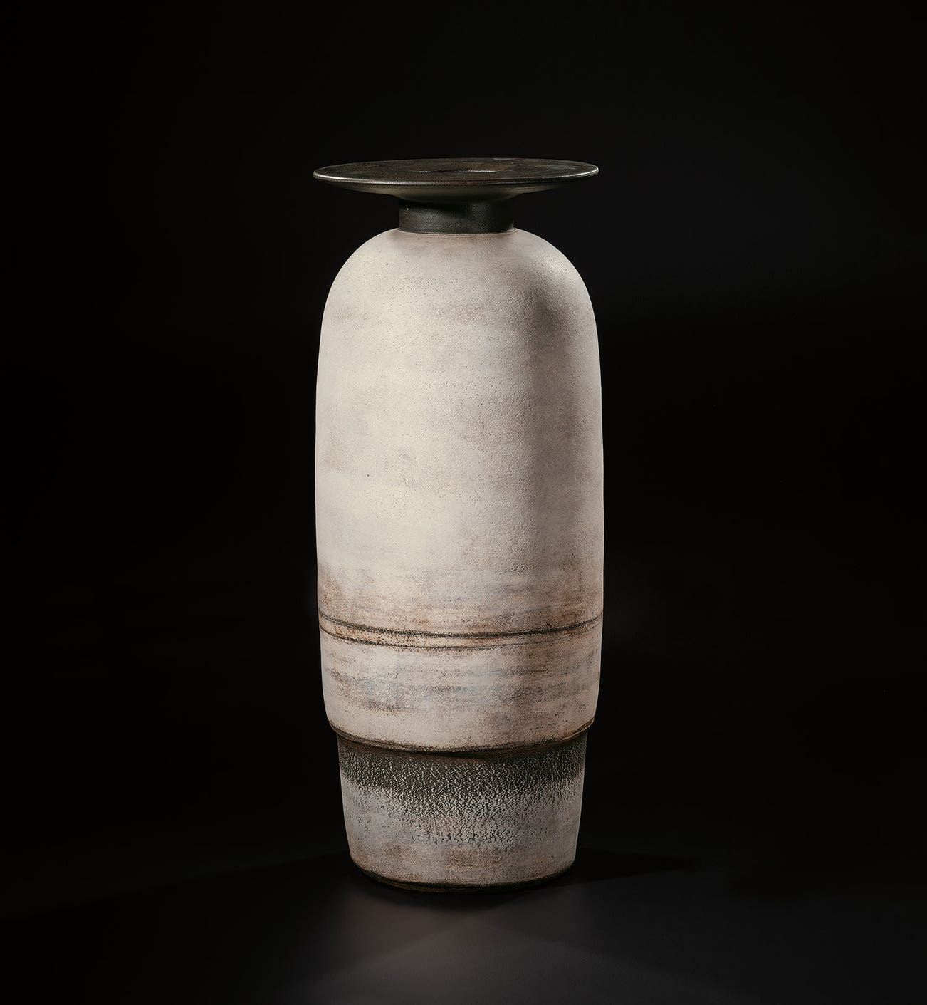 In the last phase of his career, Coper reduced the scale of his work creating small "Cycladic" pots that stood on pedestals or drums, recalling the clay figures of Bronze Age Greece.