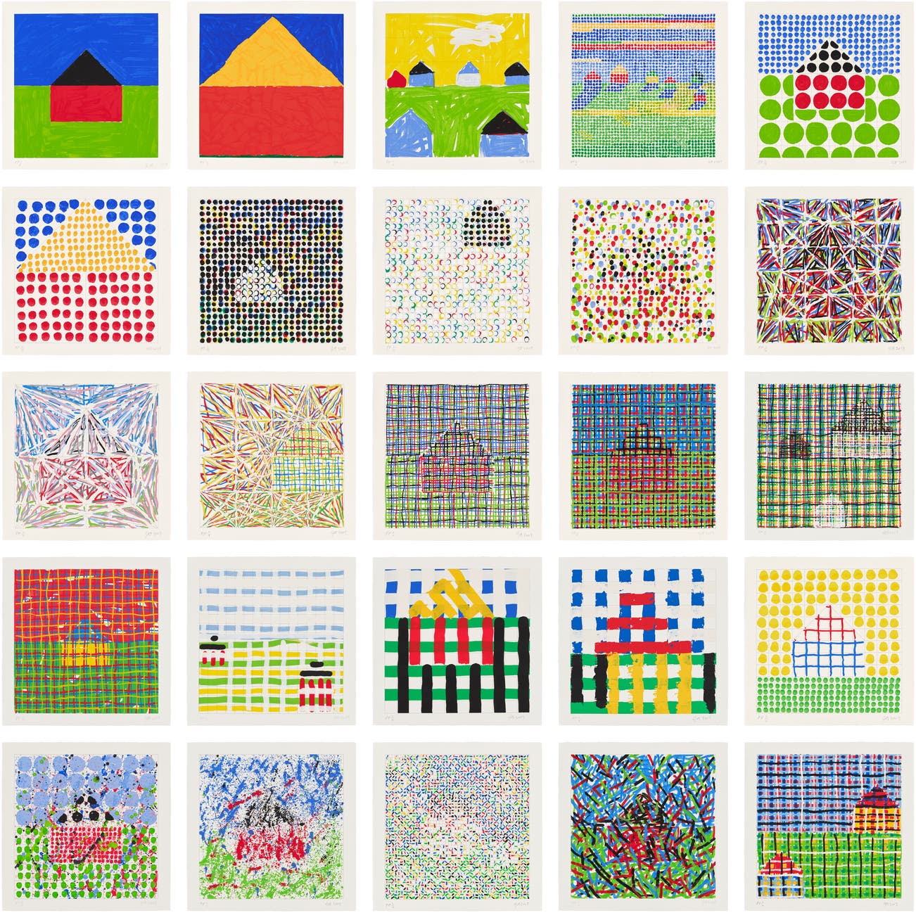 全套25組絲網印刷 英國索馬賽特版畫紙本(四周留邊,散裝如出版所示)附有絲網印刷金屬品,全部存於原裝黃色布面作品集,印有藝術家的姓名和頭銜。