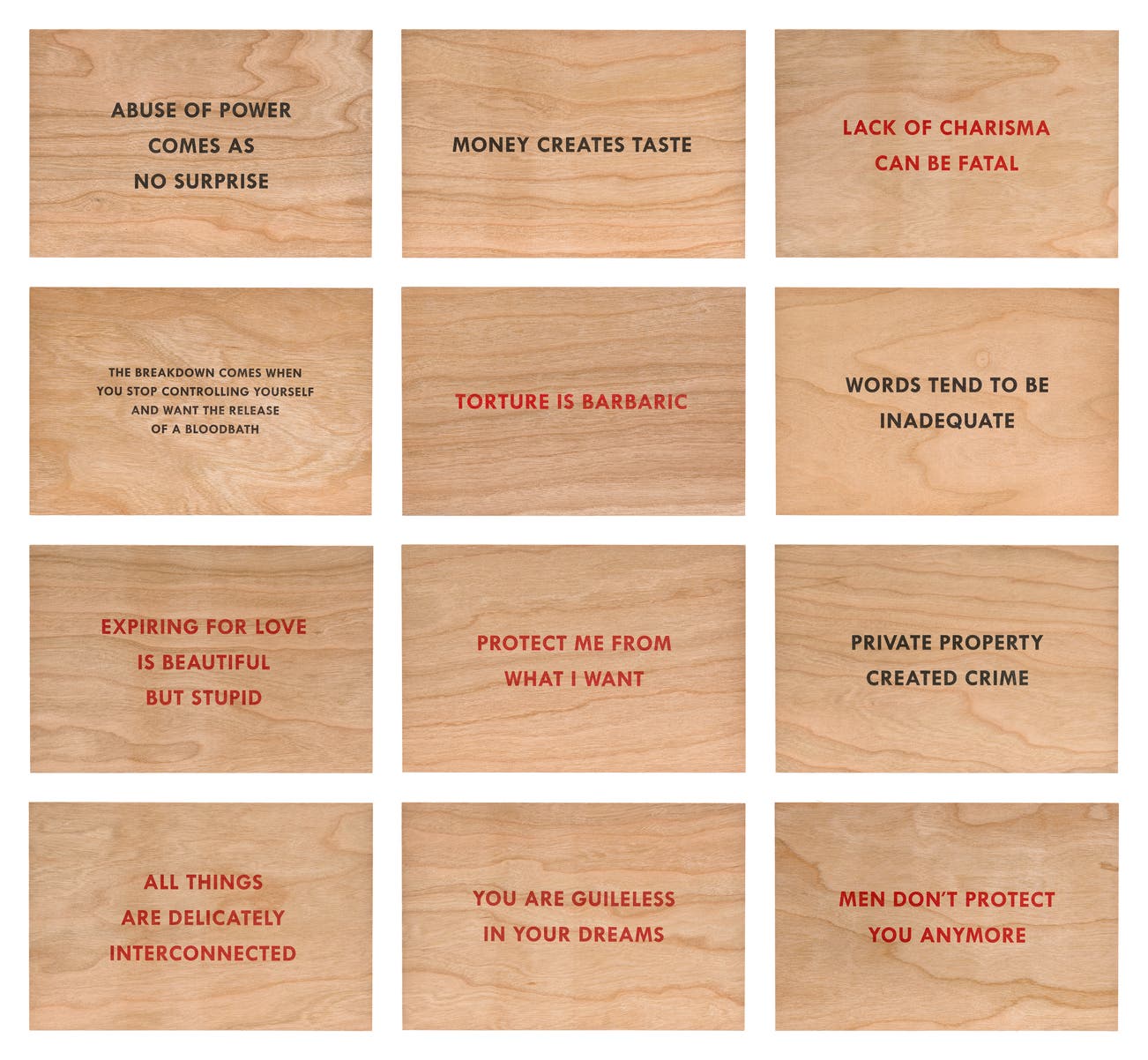 American | 1950Jenny Holzer is a Conceptual artist best known for her text-based public art projects. Holzer's work speaks of violence, oppression, sexuality, feminism, power, war and death. Throughout the years, Holzer has employed a variety of media, from a T-shirt to a plaque to an LED sign. Starting in the 1970s with the New York City posters, and continuing through her recent light projections on landscape and architecture, she uses her art as a form of communication and commentary. Holzer's art hangs in important collections around the globe including 7 World Trade Center, the Venice Biennale, the Guggenheim Museums in New York and Bilbao and the Whitney Museum of American Art.