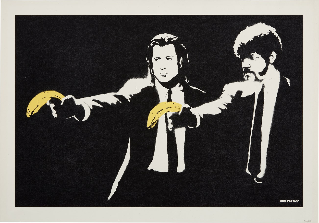 His graffiti, paintings and screenprints use whimsy and humour to satirically critique war, capitalism, hypocrisy and greed — with not even the Royal family safe from his anti-establishment wit.