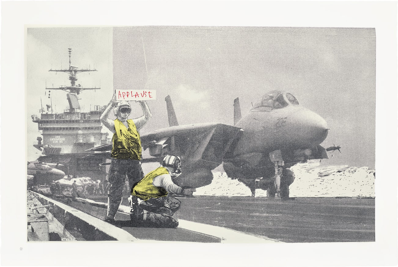 His graffiti, paintings and screenprints use whimsy and humour to satirically critique war, capitalism, hypocrisy and greed — with not even the Royal family safe from his anti-establishment wit.
