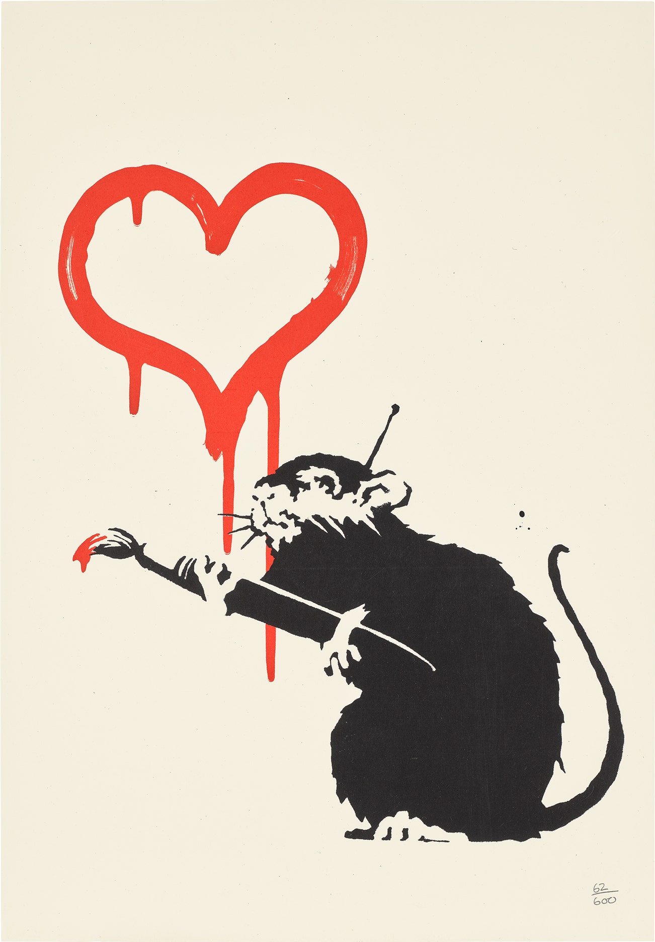 共有600版無簽名銘刻版、150版簽名版,由倫敦Pictures on Walls出版,此為未裱無簽名銘刻版第62版,並附Pest Control工作室之保證書。