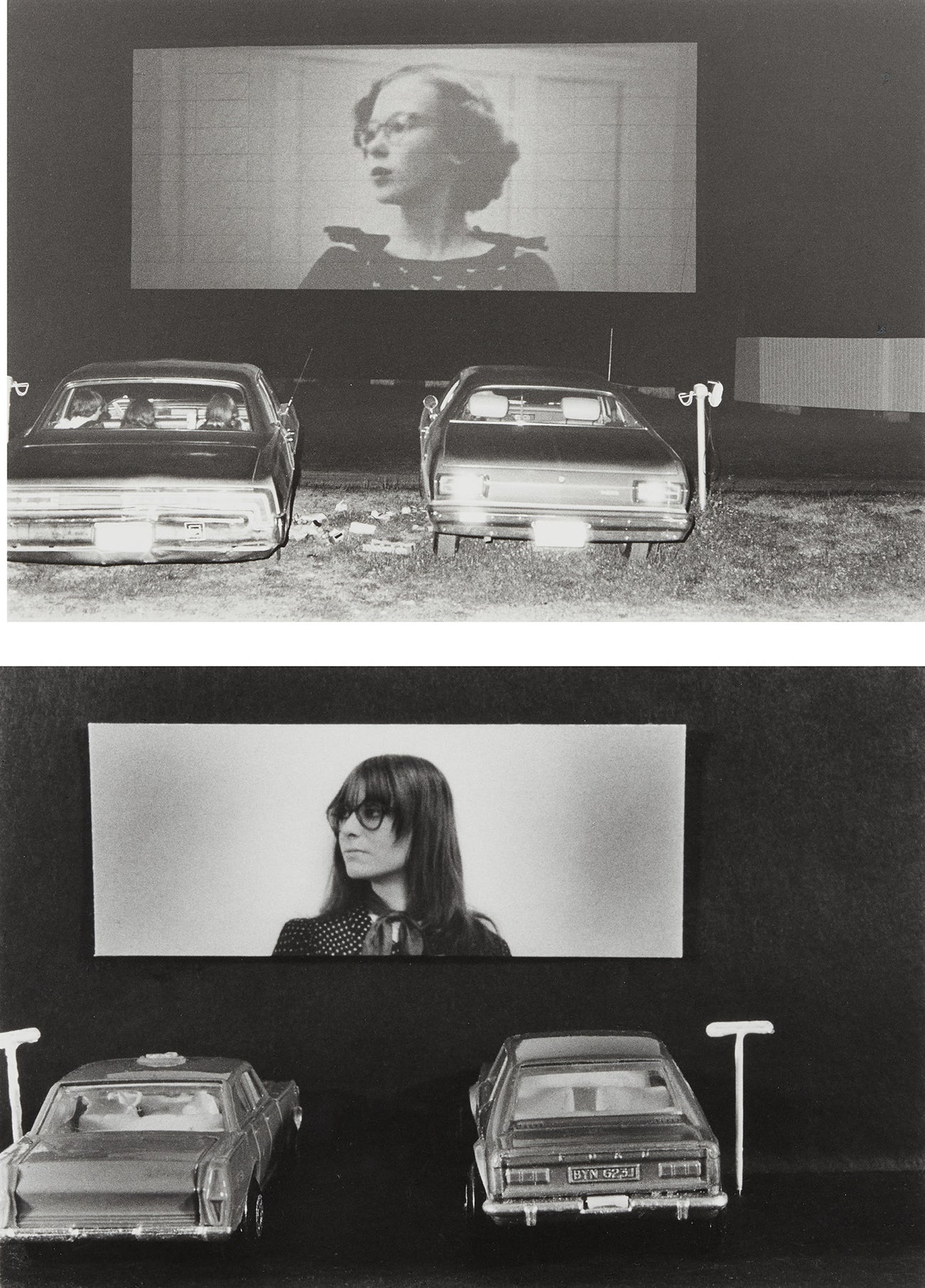 Deeply integrated within the 1970s and 1980s creative scene in downtown New York City, Marcia Resnik’s photographs connect both feminist and conceptual circles. In her Landscape/Loftscape series of 1976, Resnik, like others at the time, challenges the reality of the “straight photograph,” and the duality of what is real, and what is not, within the medium of photography. By juxtaposing an image of a drive-in screen, with her own self-portrait, she highlights the constructed nature of the photographic image.