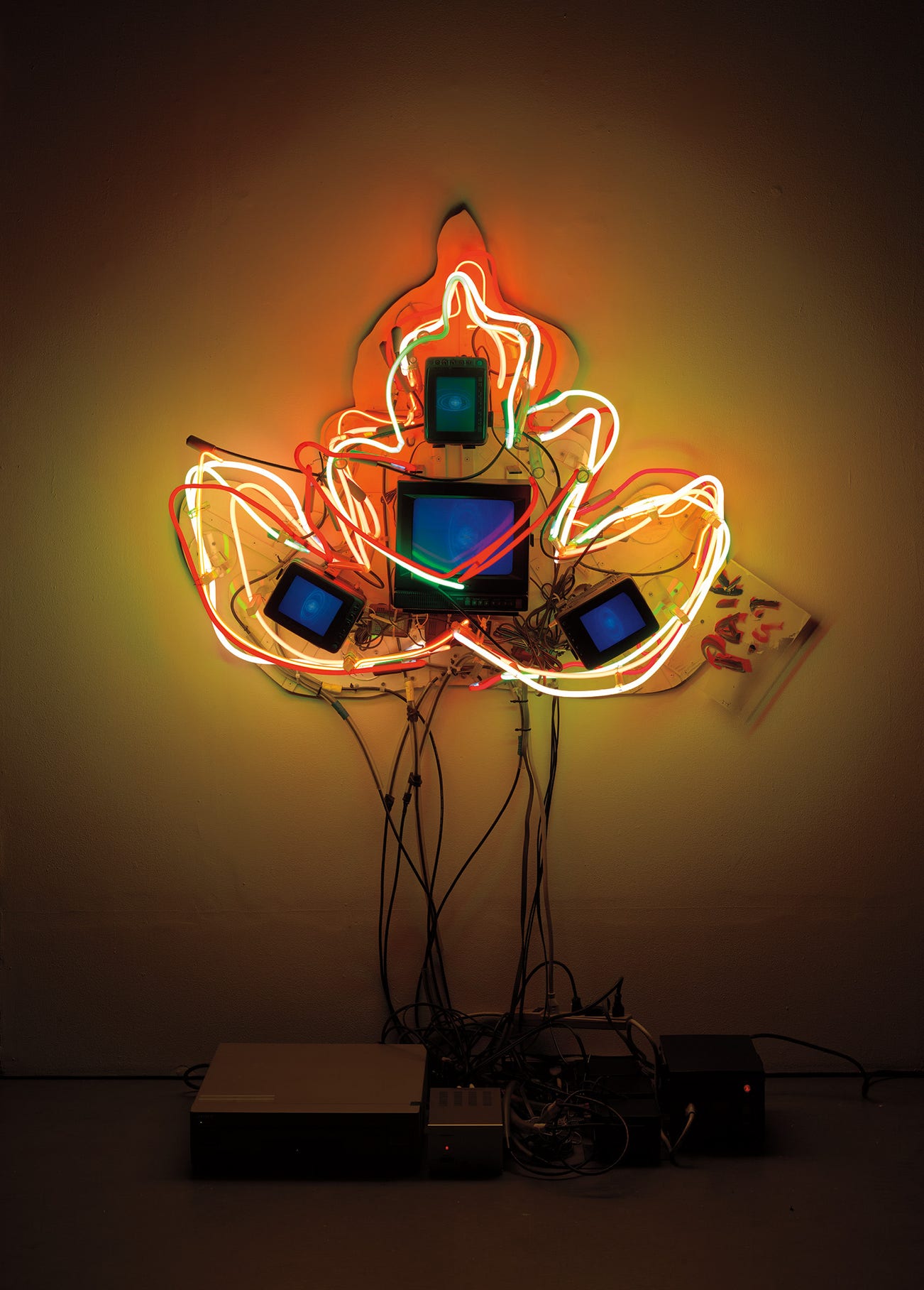 signed, indistinctly inscribed and dated 'PAik '97 ... PAIK '97' on a plaque affixed to the lower right of the main panel