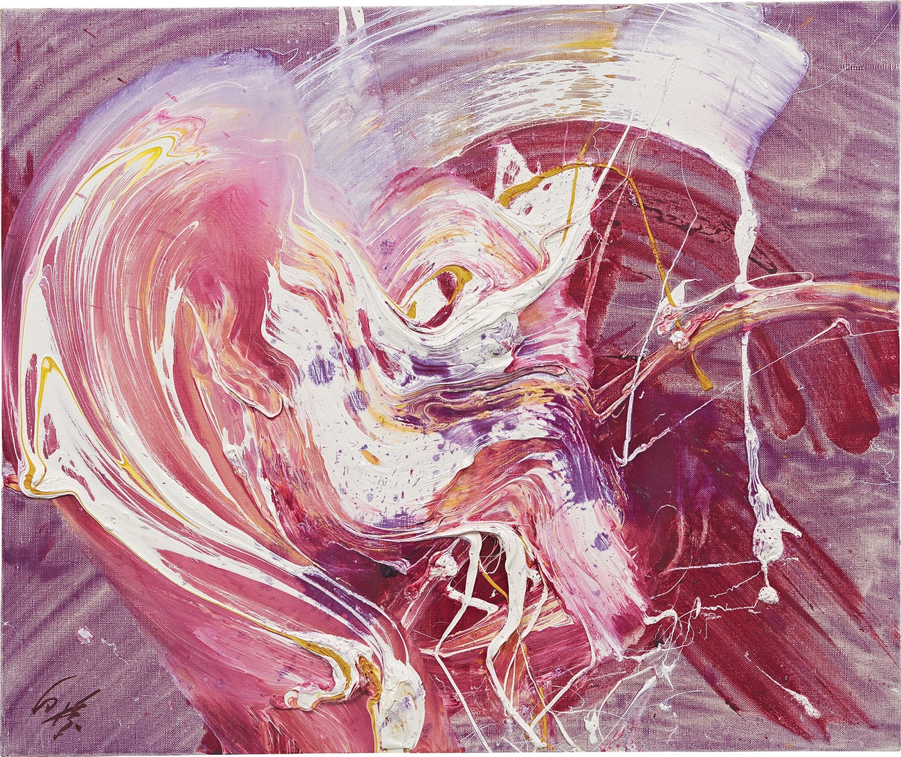 款識: 白髮(日文)(左下); 白髮一雄 《紫仙》 昭和五十九年十月(畫背)
