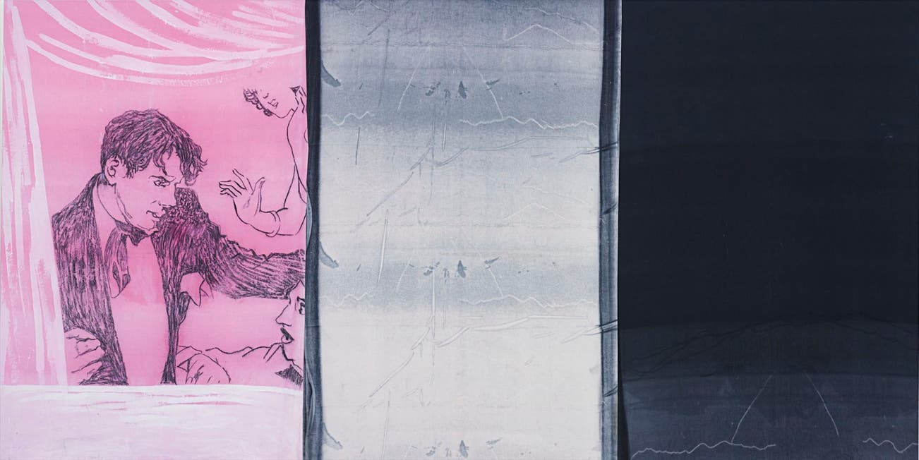 acrylic and crayon on linen