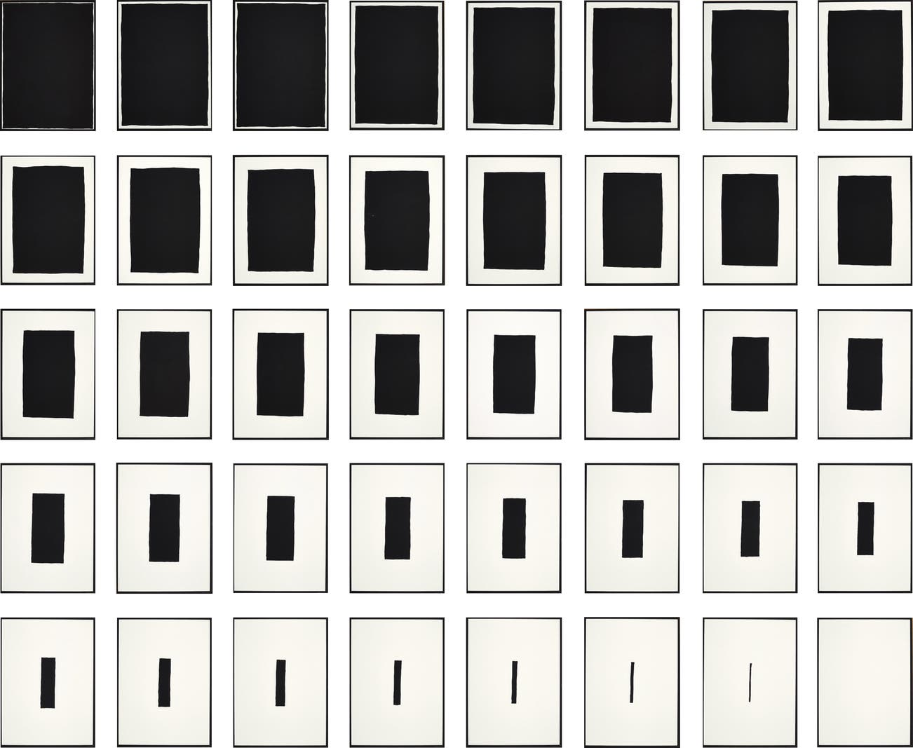 Using a prescription to direct the creation of a work, the artist’s hand subordinated to the artist's thoughts, in direct contrast to the Abstract Expressionist movement earlier in the century. Actions, forms and adjectives were broken down into terms, serially repeated and reconfigured: grids, lines, shapes, color, directions and starting points are several examples. These directives and constructs fueled an influential career of vast variety, subtlety and progression.