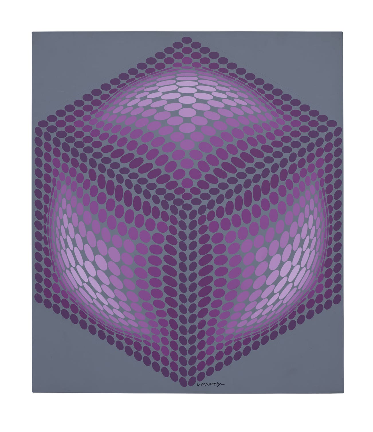 The authenticity of the present work has been confirmed by Pierre Vasarely, President of the Fondation Vasarely, universal legatee and the moral right holder of Victor Vasarely. This work will be included in the forthcoming Catalogue Raisonné de l’Oeuvre Peint de Victor Vasarely, which is currently being compiled by the Fondation Vasarely, Aix-en-Provence.