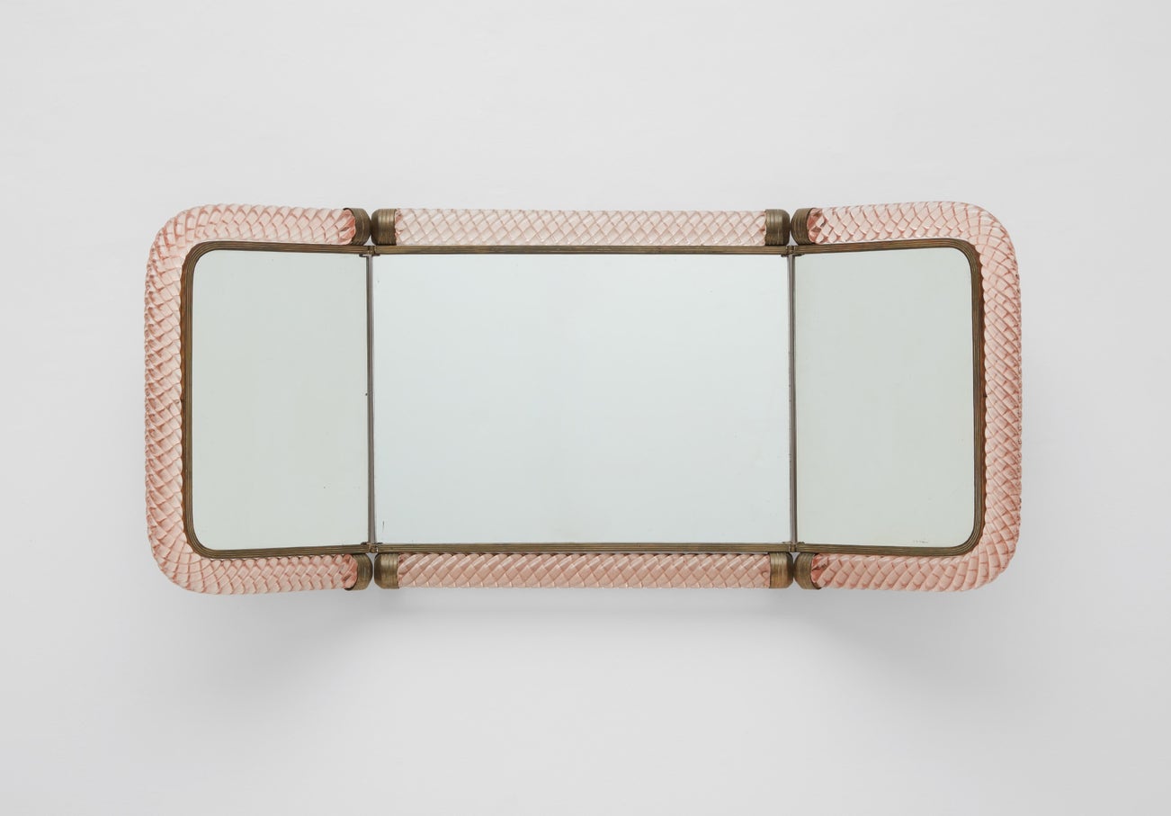 Treccia glass, mirrored glass, brass.