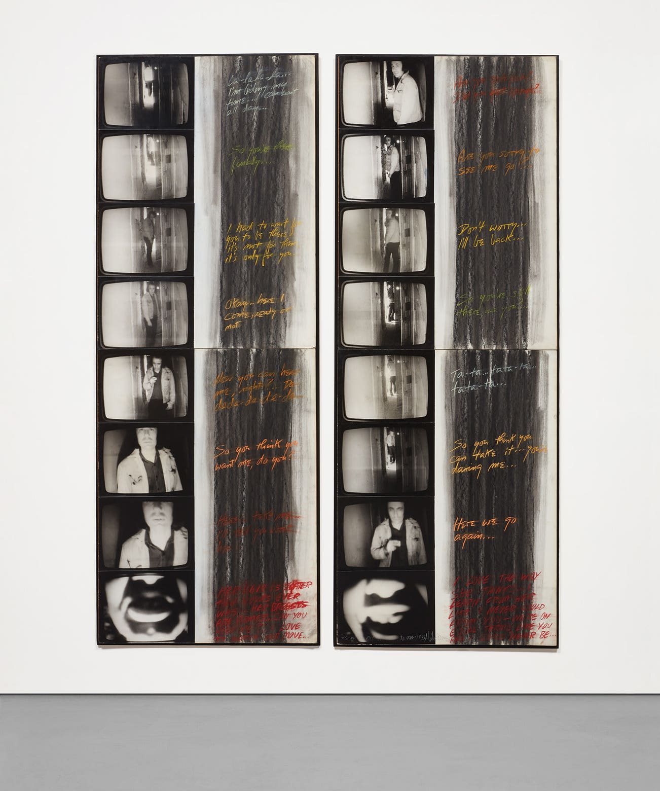 款識:WALK-OVER (VIDEOTAPE, 30 MIN; 1973) –Vito Acconci(右下板下方邊緣)