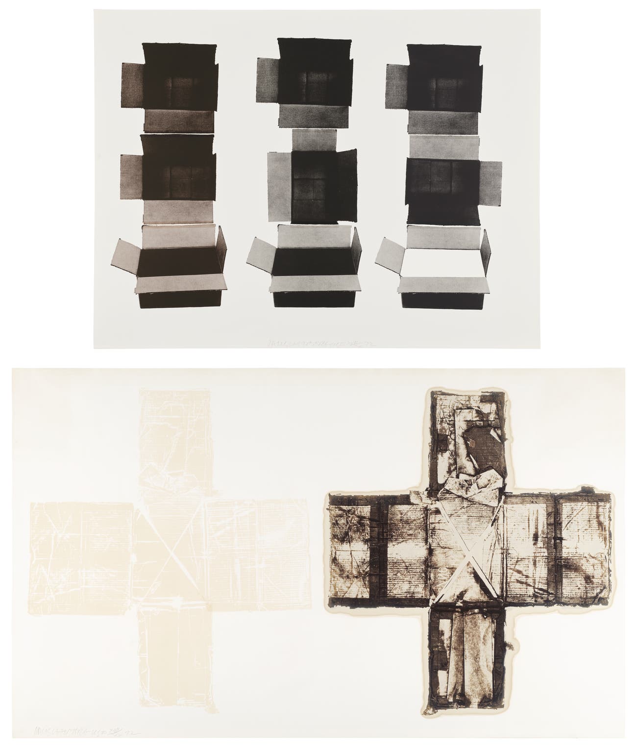 一組絲網印刷石版畫及一組藍棕石版畫 編織紙本(四周留邊)