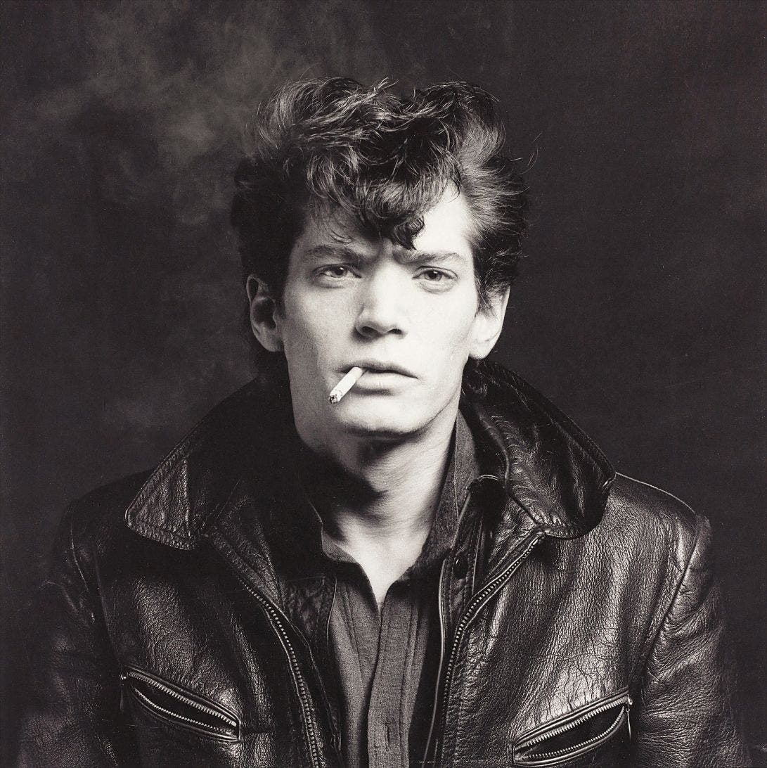 With his 1950s hairdo, the dark leather jacket and a cigarette in the corner of his mouth, Mapplethorpe portrays himself as the quintessential rebel from a bygone era. We immediately are reminded of another cultural icon James Dean and his 1955 flim Rebel Without a Cause. For Certain People, his 1985 book of portraits, Mapplethorpe chose this self portrait for the cover image.
