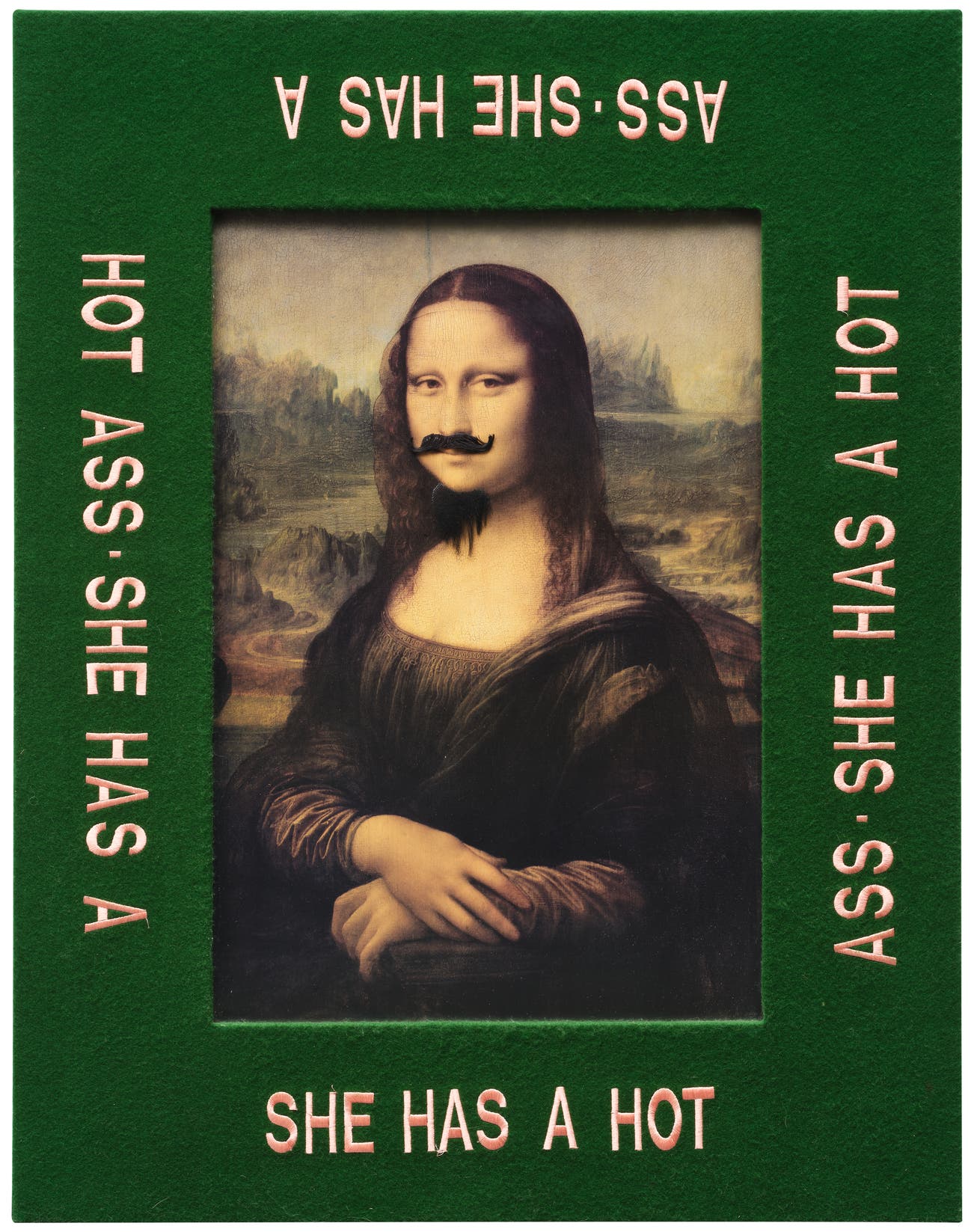 獨版照片複製品,配有臉部道具(鬍鬚及山羊胡);裝裱於原始的毛氈襯底畫框內,框上飾有縫製的字母。