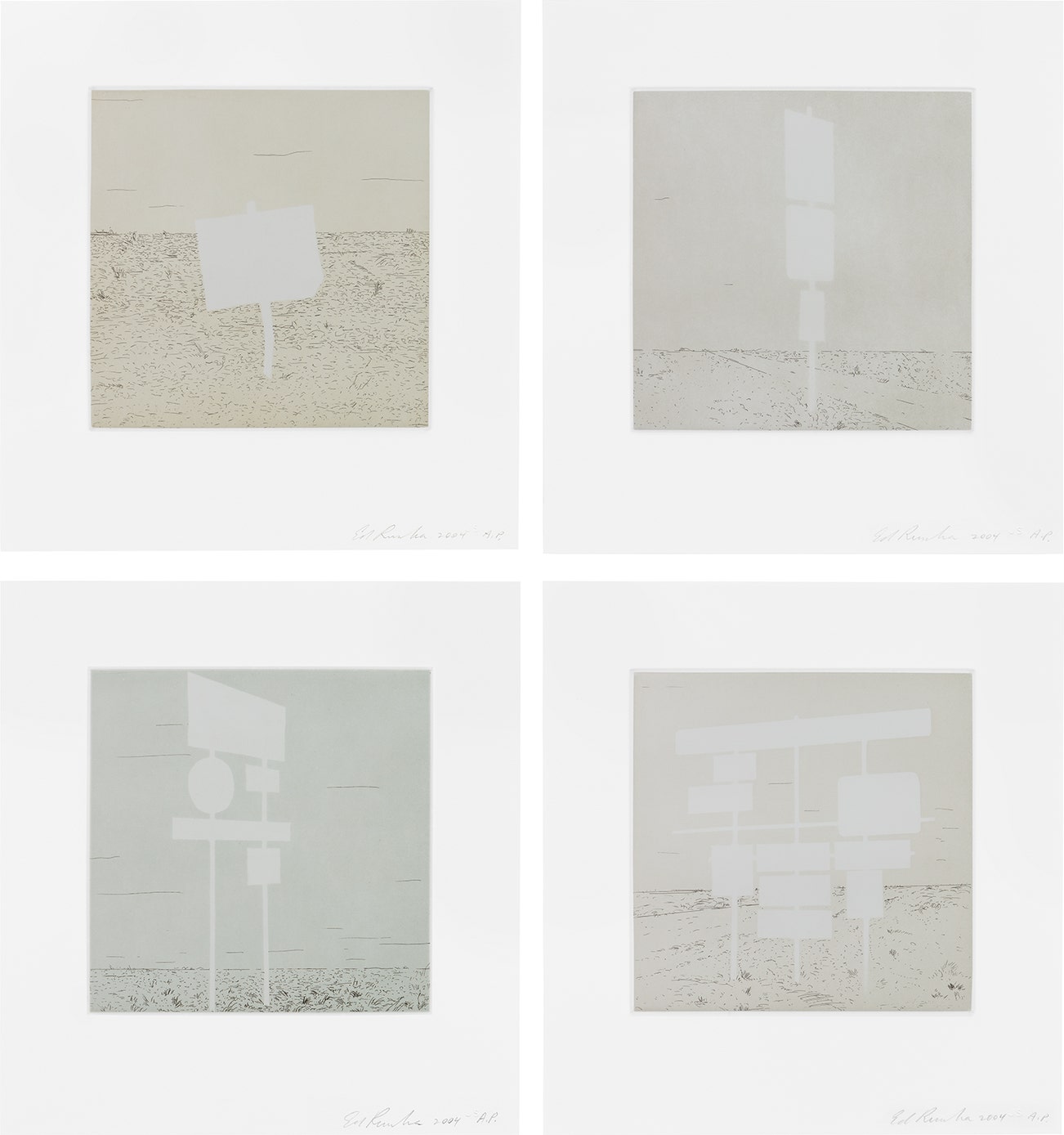 His most iconic works are at turns poetic and deadpan, epigrammatic text with nods to advertising copy, juxtaposed with imagery that is either cinematic and sublime or seemingly wry documentary. Whether the subject is his iconic Standard Gas Station or the Hollywood Sign, a parking lot or highway, his works are a distillation of American idealism, echoing the expansive Western landscape and optimism unique to postwar America.