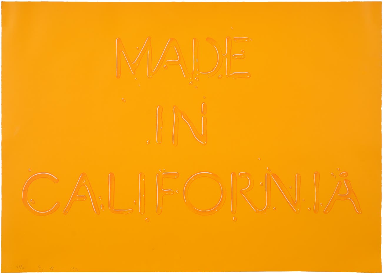 His most iconic works are at turns poetic and deadpan, epigrammatic text with nods to advertising copy, juxtaposed with imagery that is either cinematic and sublime or seemingly wry documentary. Whether the subject is his iconic Standard Gas Station or the Hollywood Sign, a parking lot or highway, his works are a distillation of American idealism, echoing the expansive Western landscape and optimism unique to postwar America.