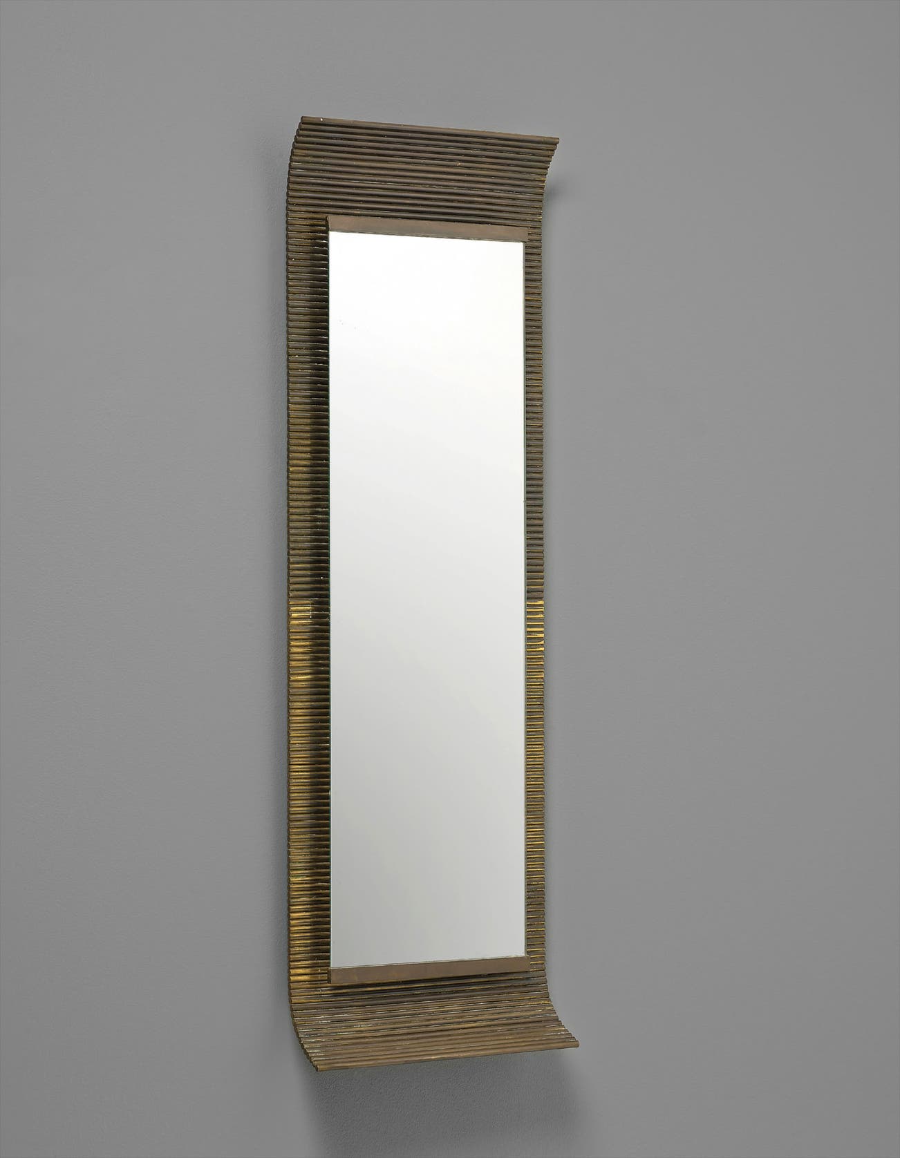 Tubular brass, brass, mirrored glass.