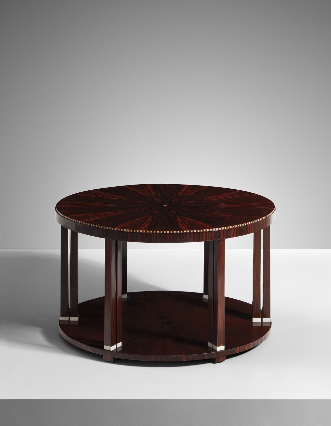 魯爾曼1920年代早期所創作並與1925年巴黎所展覽的作品無疑使其堪稱現代設計大師。此次展覽,魯爾曼與超過四十餘藝術家、設計師、匠人合作來實現他的藏家之殿,呈現裝飾藝術精美性和風格的典範之作。它是展覽中廣受歡迎非常有名的展館之一(Jared Goss,〈國際展覽—藝術的裝飾性和現代工藝以及魯爾曼的藏家之殿〉,錄於Emmanuel Bréon和Rosalind Pepall編,《魯爾曼:裝飾藝術的天才》,巴黎和蒙特利爾,2004年,第45頁)展館畫室的照片中顯示有一件與本場呈現的非常相似的柱腳桌。此次展覽之後,對魯爾曼設計產品的需求大量增長。他廣受國際關注,作品巡展美國,並且這同一個柱腳咖啡桌於1926年在美國大都會藝術博物館再次參展。顯然這是一個魯爾曼非常滿意的設計並且廣受歡迎,於1923-24年記錄於魯爾曼酒店照片中,於1925 年出現於羅塞米爾爵士巴黎的家中,甚至出現在魯爾曼自己的辦公室裝飾中。