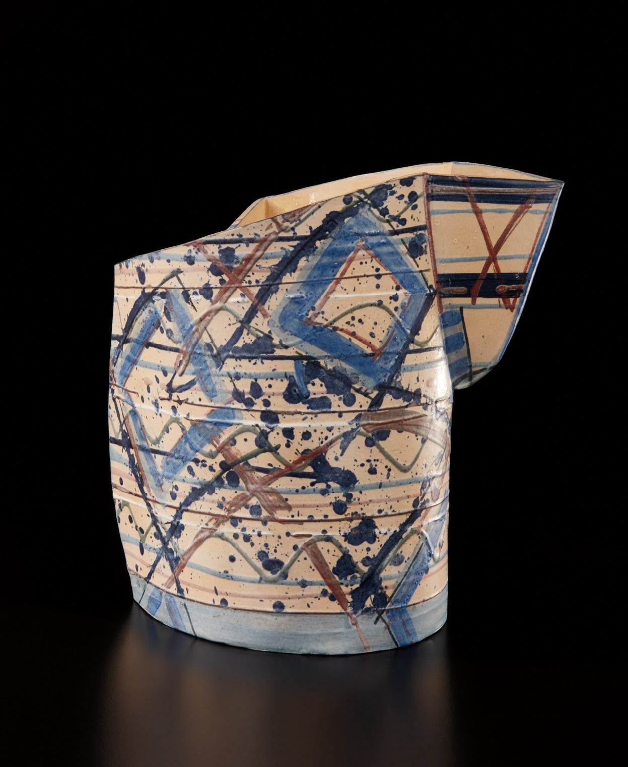 British | 1948A leading figure in English ceramics, Alison Britton was part of a group of influential ceramists who emerged from the Royal College of Art in the 1970s, including Elizabeth Fritsch and Jacqueline Poncelet, whose work sought to re-establish the vessel as an abstract form. Rather than throw on a wheel, Britton hand-builds her pieces by assembling slabs in an asymmetrical, often architectural structure and paints them in energetic gestural patterns, combining sculpture with painting. Internationally recognized as a curator, writer and recipient of the Most Excellent Order of the British Empire, her ceramic artworks are held in the permanent collections of numerous institutions including the Stedelijk Museum, Amsterdam, The Powerhouse Museum, Sydney, and the Los Angeles County Museum of Art.