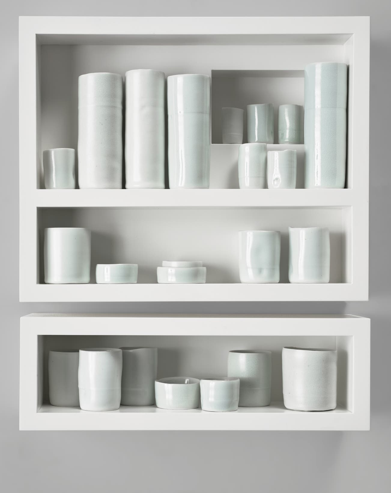 23件拉坯瓷器 白米色青瓷 白色漆櫃