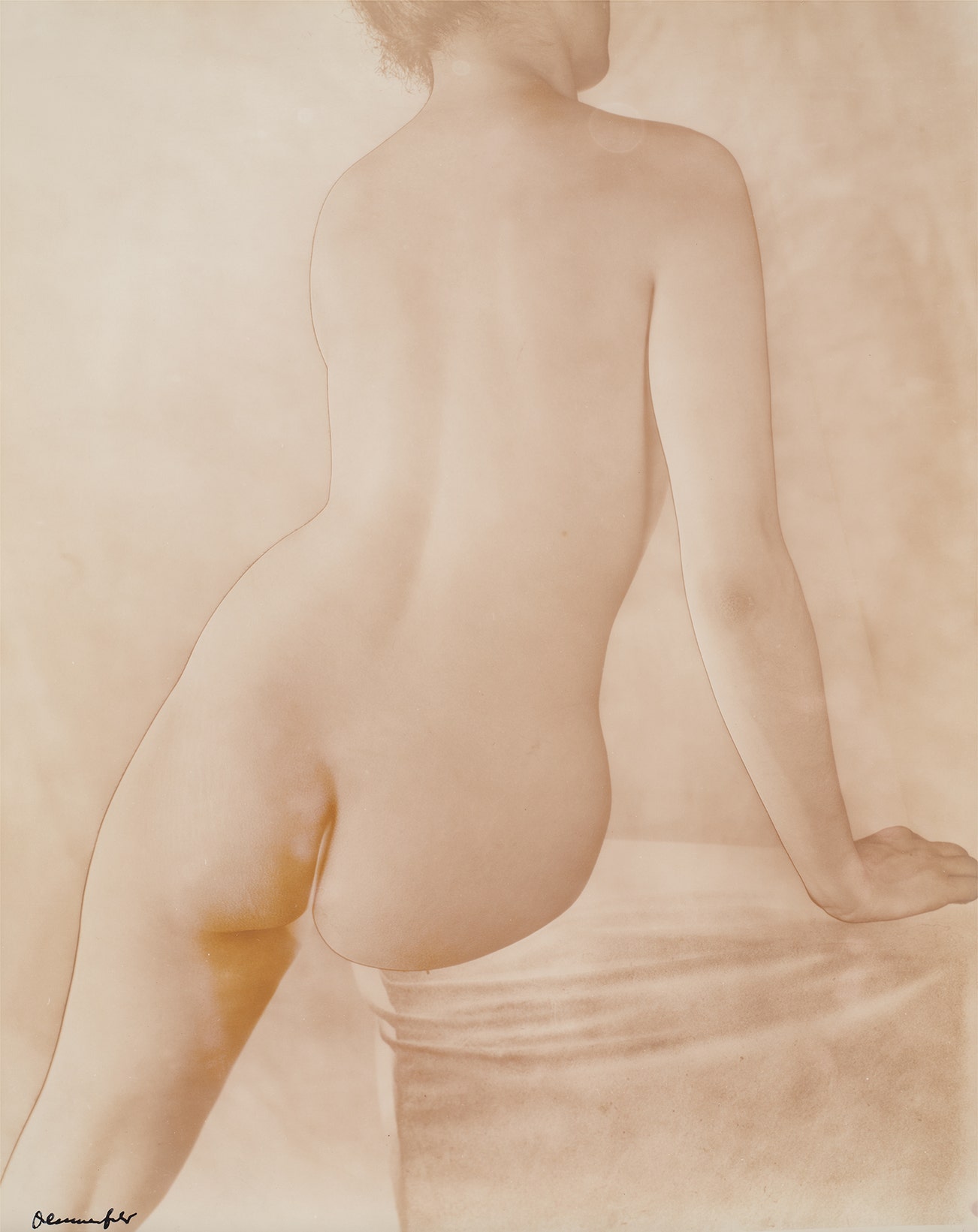 This boldly signed photograph comes originally from the collection Dallas retail executive Stanley Marcus who acquired it directly from Erwin Blumenfeld. Marcus (1905-2002) served as both president and chairman of the board of the luxury department store Neiman Marcus, founded by his father and aunt. Marcus was a noted collector and patron of the arts as well as a photographer, and his love for the medium led him to correspond with Blumenfeld, whose highly inventive approach to photography he had admired. The photograph offered here is part of a select group of prints Blumenfeld gave Marcus in exchange for a case of champagne.