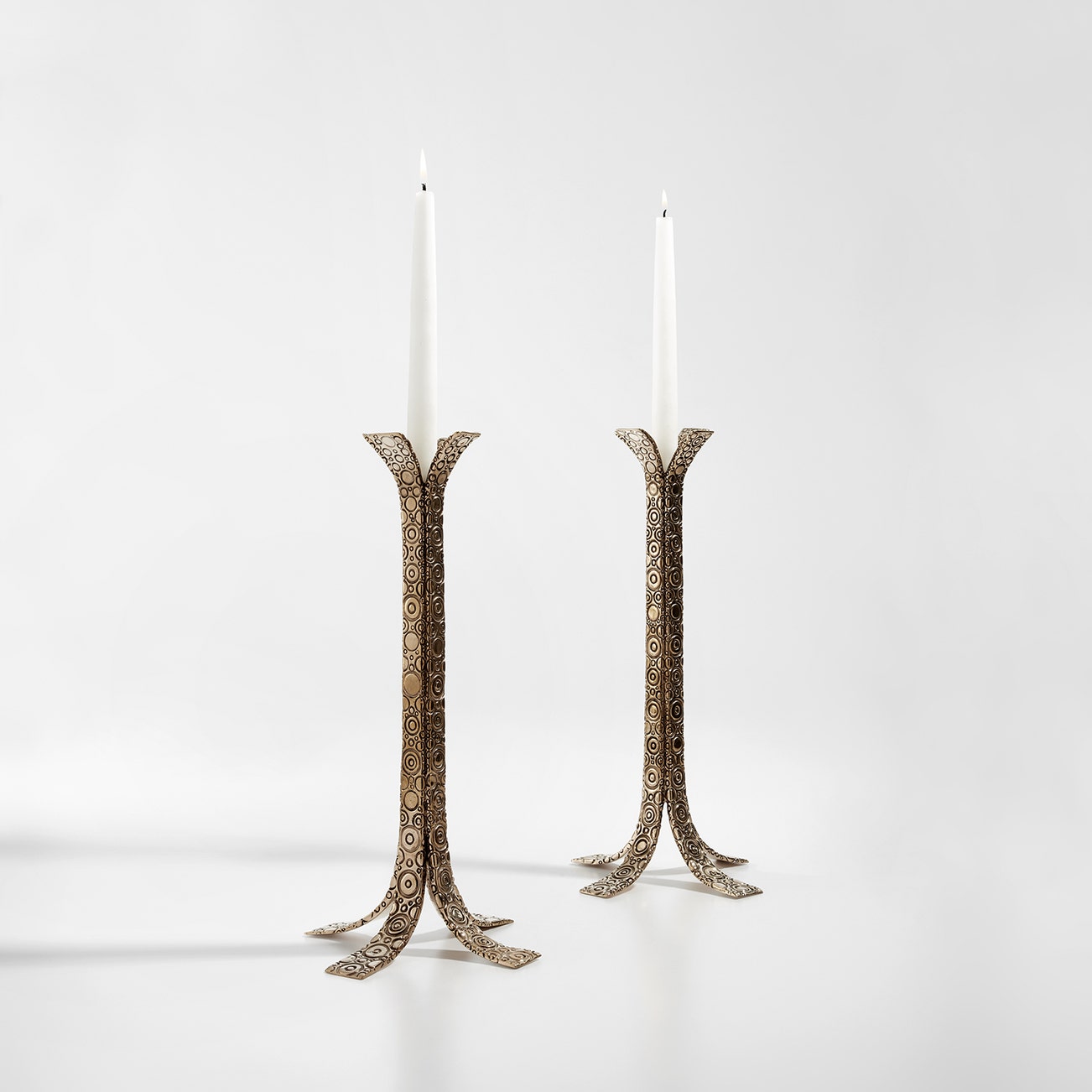 Swedish-born Ingrid Donat has lived and worked in Paris since 1975, when she moved there to study sculpture at the École des Beaux-Arts. Encounters with Sylva Bernt (the companion of André Arbus) and Diego Giacometti introduced her to the art of cast bronze furniture. Working in this most ancient of artistic media, and drawing inspiration from Art Deco design, Gustav Klimt patterning and tribal tattoos, Donat blends traditional sources to craft refreshingly original and evocative furniture that invites closer inspection.