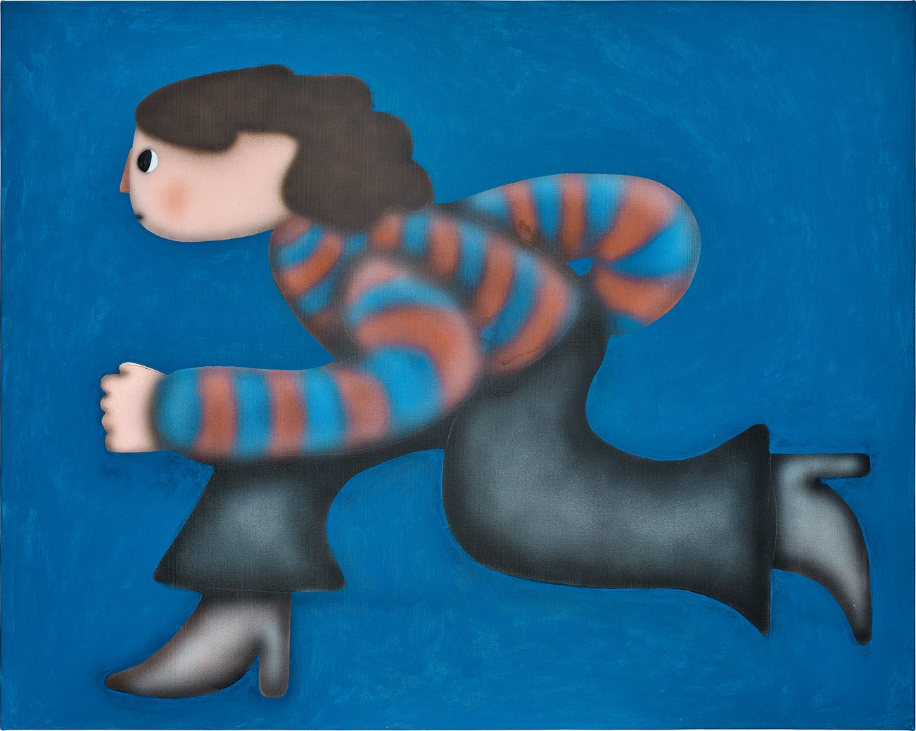 款識:《Running From a Dinosaur》Felix Treadwell 2021(畫布邊緣)