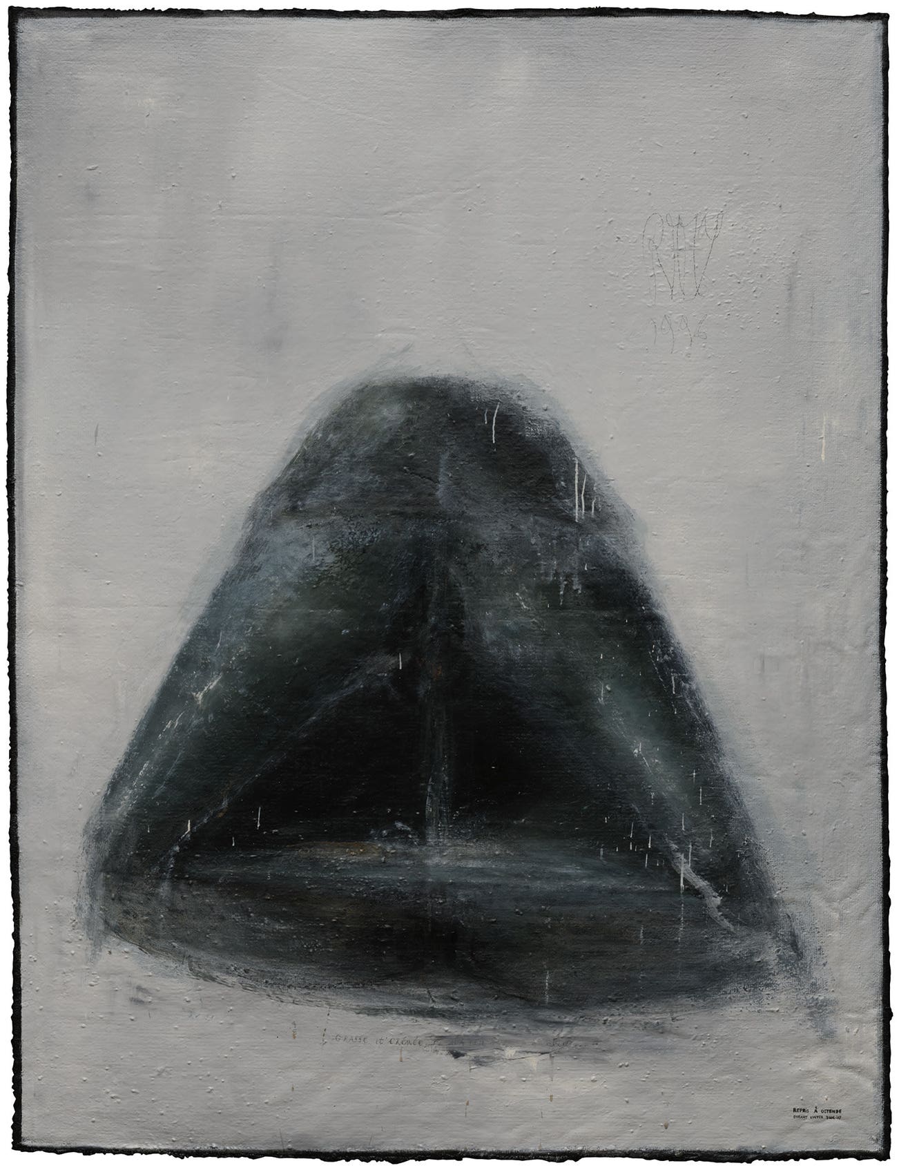 signed with the artist's pseudonym and dated 'RTTY 1996' upper right; further indistinctly titled, inscribed and dated 'GRASSe et CRémé, il m'a plu d'habiter en elle REPRIS À OSTENDE DURANT L'HIVER 2006-'07' lower edge