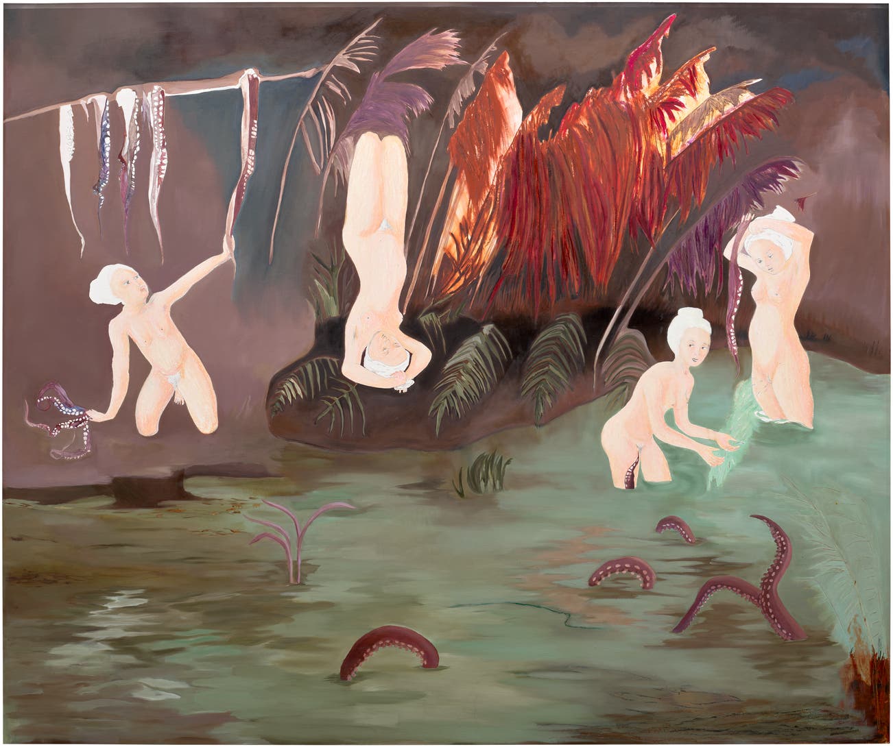 款識:Sanam Khatibi Feathered Beauties 2014(畫背)