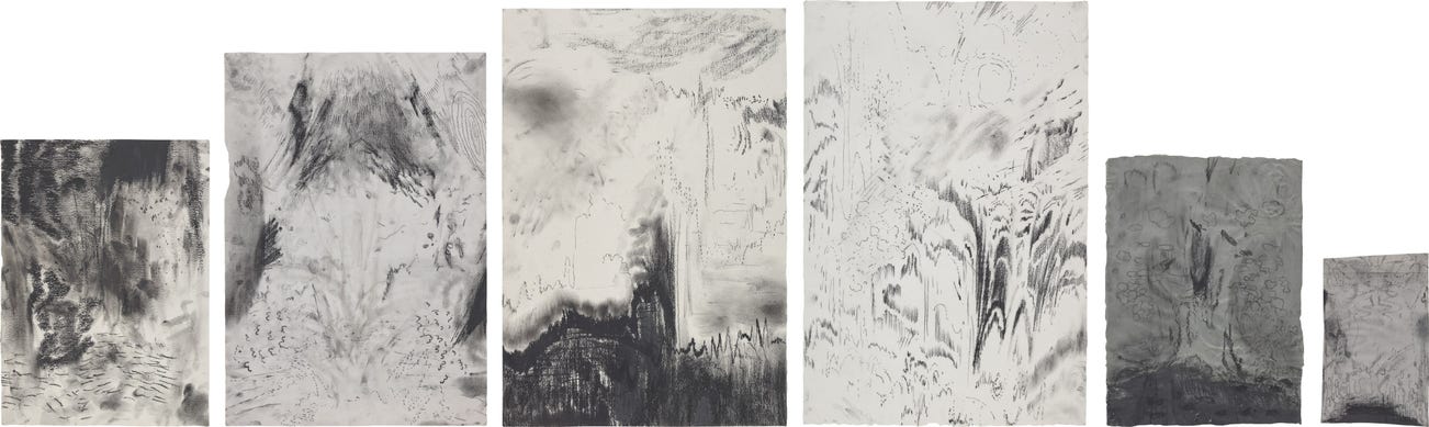 each signed, titled, consecutively numbered and dated 'Jim Hodges Sept 2007 in the dark cave [1-6] of 6 parts' on the reverse; further inscribed 'for glenn mom.' on the reverse of part 6