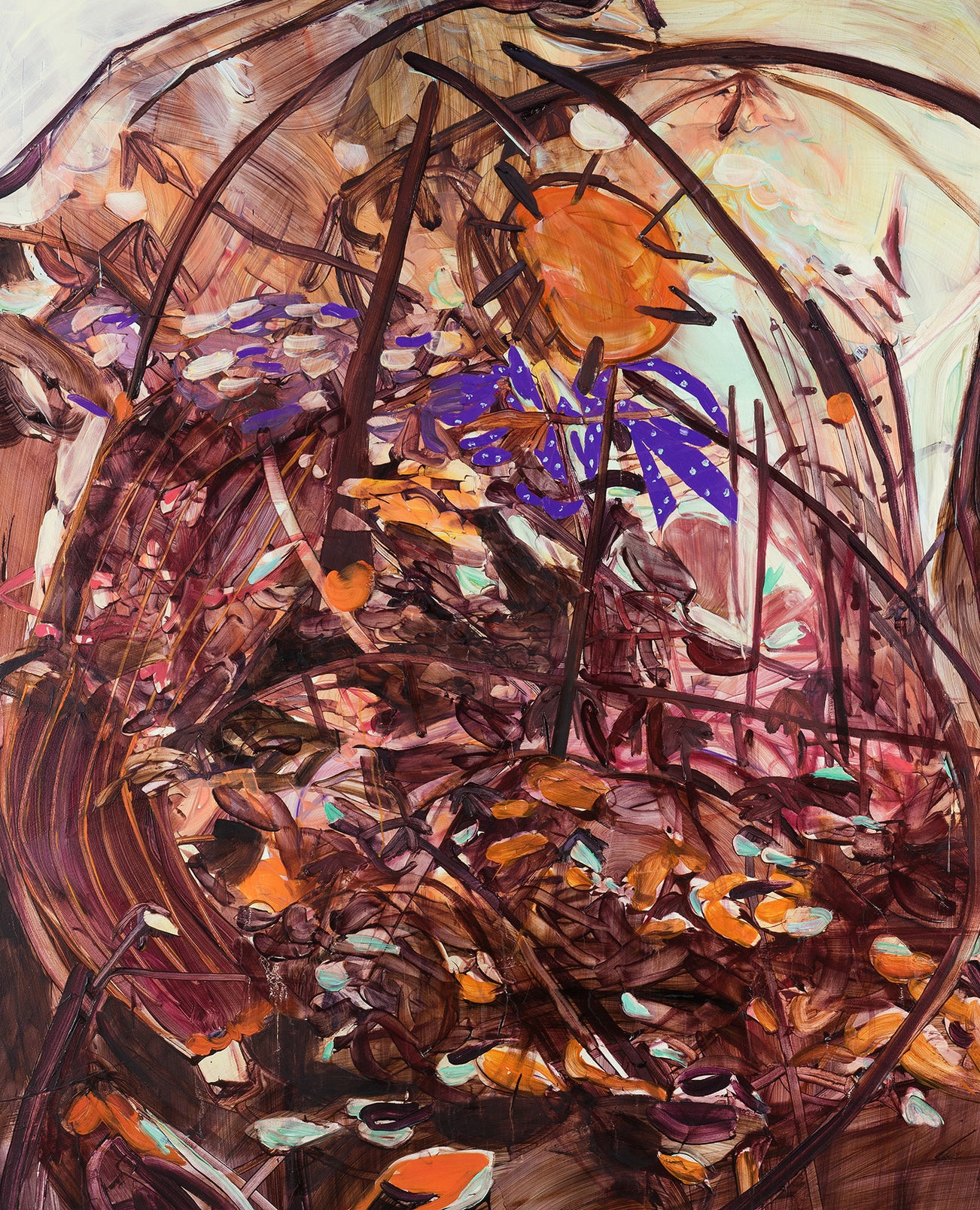 Fadojutimi brings a frenetic energy to painting, as many of her works are completed in late-night bursts of creativity; what may start the night as a blank canvas often emerges in the morning as a finished work. Describing her practice in environmental terms, Fadojutimi strives to incorporate the ineffable associations of memory absorbed from the warm moments and special objects of life; taken against the societal backdrop of their creation, Fadojutimi’s paintings shine out as optimistic beacons for dark times.