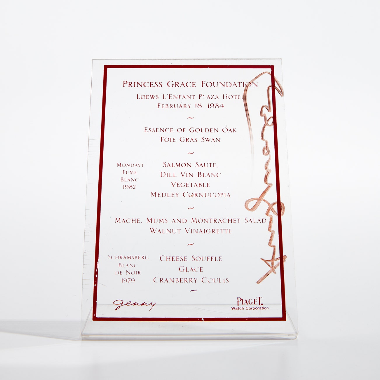 《格蕾絲王妃基金會菜單,由安迪.沃荷簽名》