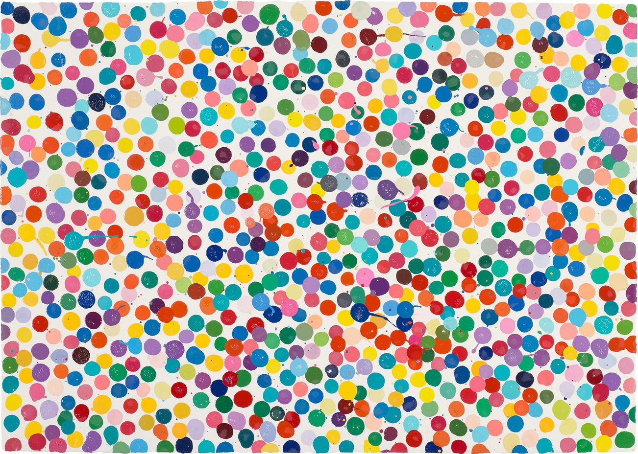 Hirst remains genre-defying and creates everything from sculpture, prints, works on paper and paintings to installation and objects. Another of his most celebrated series, the 'Pill Cabinets' present rows of intricate pills, cast individually in metal, plaster and resin, in sterilized glass and steel containers; Phillips New York showed the largest of these pieces ever exhibited in the United States, The Void, 2000, in May 2017.