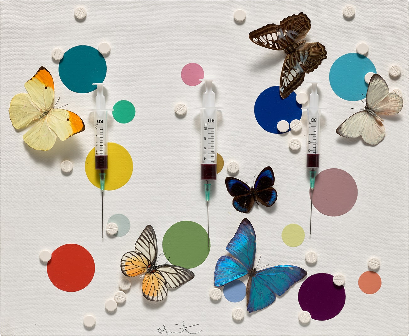 Hirst remains genre-defying and creates everything from sculpture, prints, works on paper and paintings to installation and objects. Another of his most celebrated series, the 'Pill Cabinets' present rows of intricate pills, cast individually in metal, plaster and resin, in sterilized glass and steel containers; Phillips New York showed the largest of these pieces ever exhibited in the United States, The Void, 2000, in May 2017.