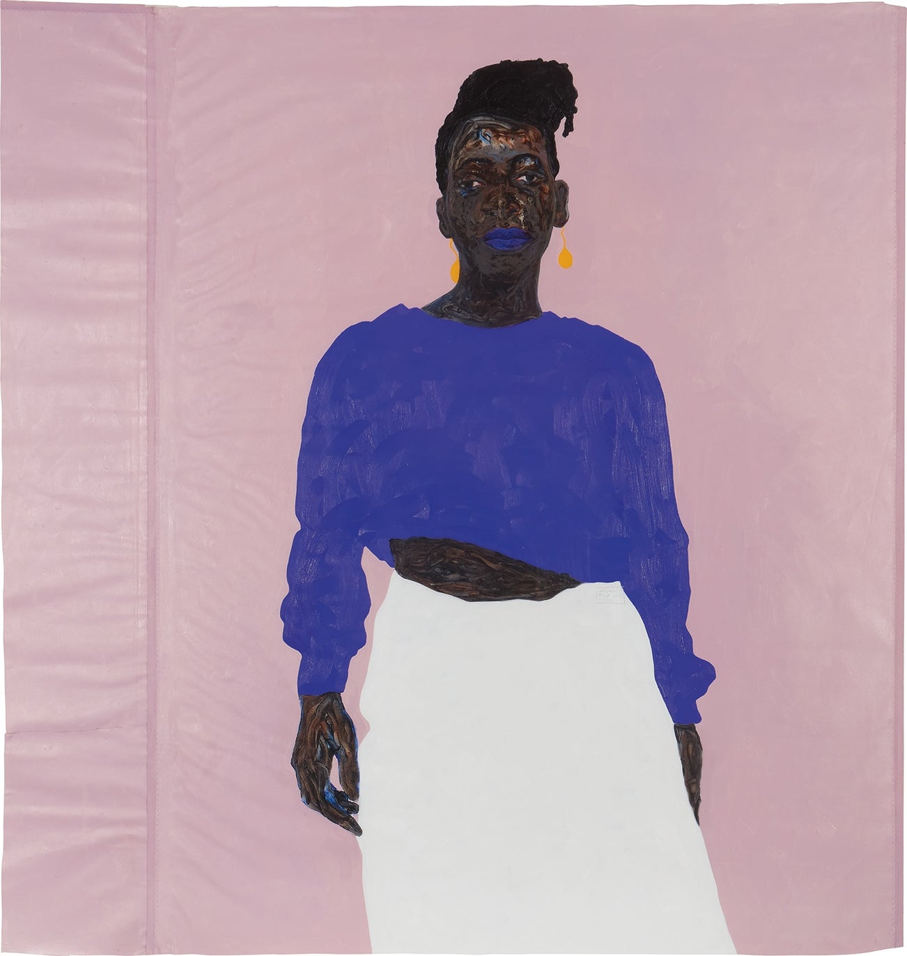 GhanaianAmoako Boafo’s work questions contemporary misunderstandings of blackness by contrasting personal and structural perceptions and portrayals of black people. His heavily expressionistic and sensitive portraits of friends and acquaintances highlight their self-perception and beauty while challenging the misconceptions of blackness that objectify and dehumanize black people. Often depicting his sitters with animated lucidity against vibrant, monochromatic backgrounds, Boafo asks for understanding of the diversity and complexity of blackness in spite of the frequently negative representations of black people in media and culture. Though born in Accra, Ghana, he now lives and works in Vienna, Austria.