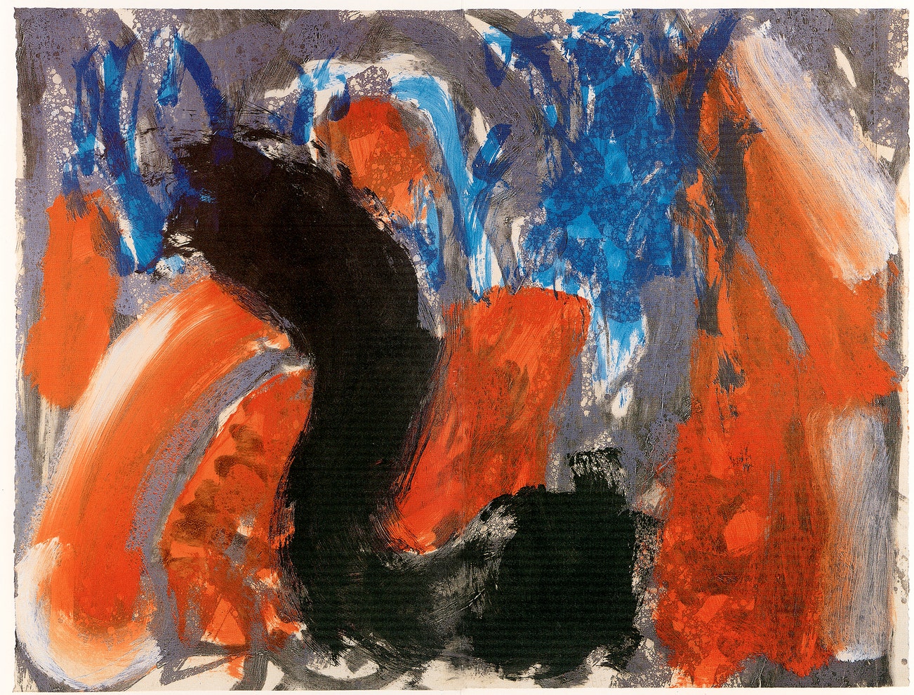 The seemingly casual, urgent quality of his paintings and prints belies a drawn-out process of making: it could take a year for Hodgkin to prepare to execute a single brushstroke. The resultant maximalist, saturated works on canvas, paper, wood and board can be intimately scaled and jewel-like, or oversized, opulent and theatrical. Whilst his early compositions have a collaged, geometric flatness, Hodgkin's later work (including etching and aquatint prints) increasingly incorporated more lush surface textures and complex, fluid patterns reminiscent of the Pahari miniatures from India, of which he was an avid collector.