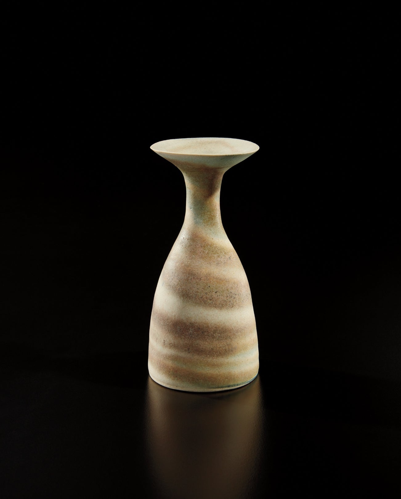 Austrian | B. 1902 D. 1995Dame Lucie Rie studied under Michael Powolny at the Kunstgewerbeschule in Vienna before immigrating to London in 1938. In London she started out making buttons for the fashion industry before producing austere, sparsely decorated tableware that caught the attention of modernist interior decorators. Eventually she hit her stride with the pitch-perfect footed bowls and flared vases for which she is best-known today. She worked in porcelain and stoneware, applying glaze directly to the unfired body and firing only once. She limited decoration to incised lines, subtle spirals and golden manganese lips, allowing the beauty of her thin-walled vessels to shine through. In contrast with the rustic pots of English ceramicist Bernard Leach, who is considered an heir to the Arts and Crafts movement, collectors and scholars revere Rie for creating pottery that was in dialogue with the design and architecture of European Modernism.