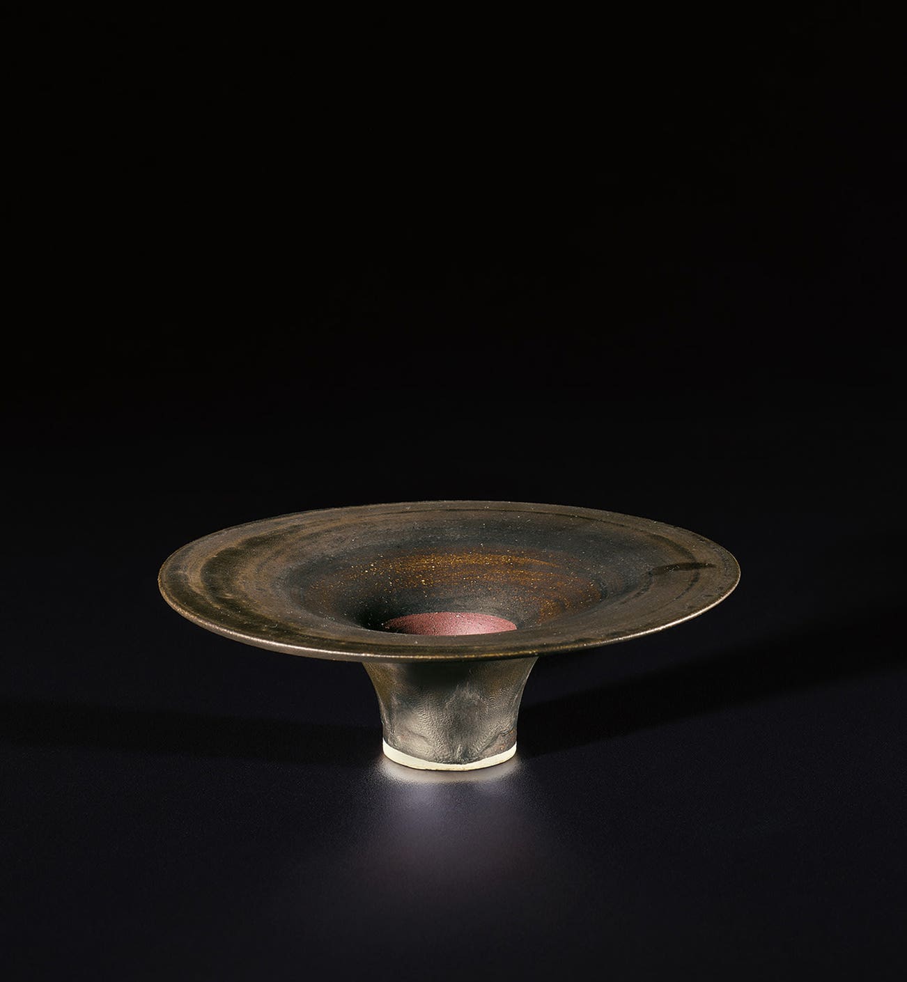 Dame Lucie Rie studied under Michael Powolny at the Kunstgewerbeschule in Vienna before immigrating to London in 1938. In London she started out making buttons for the fashion industry before producing austere, sparsely decorated tableware that caught the attention of modernist interior decorators. Eventually she hit her stride with the pitch-perfect footed bowls and flared vases for which she is best-known today. She worked in porcelain and stoneware, applying glaze directly to the unfired body and firing only once. She limited decoration to incised lines, subtle spirals and golden manganese lips, allowing the beauty of her thin-walled vessels to shine through. In contrast with the rustic pots of English ceramicist Bernard Leach, who is considered an heir to the Arts and Crafts movement, collectors and scholars revere Rie for creating pottery that was in dialogue with the design and architecture of European Modernism.
