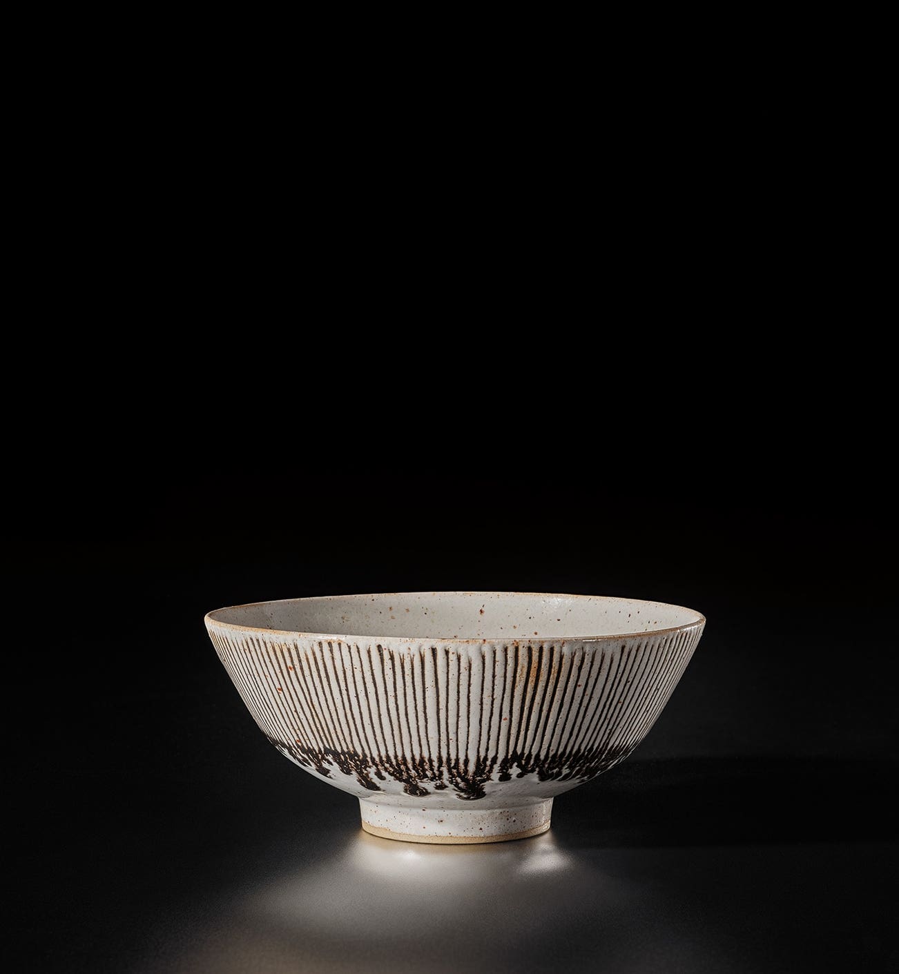Austrian | B. 1902 D. 1995Dame Lucie Rie studied under Michael Powolny at the Kunstgewerbeschule in Vienna before immigrating to London in 1938. In London she started out making buttons for the fashion industry before producing austere, sparsely decorated tableware that caught the attention of modernist interior decorators. Eventually she hit her stride with the pitch-perfect footed bowls and flared vases for which she is best-known today. She worked in porcelain and stoneware, applying glaze directly to the unfired body and firing only once. She limited decoration to incised lines, subtle spirals and golden manganese lips, allowing the beauty of her thin-walled vessels to shine through. In contrast with the rustic pots of English ceramicist Bernard Leach, who is considered an heir to the Arts and Crafts movement, collectors and scholars revere Rie for creating pottery that was in dialogue with the design and architecture of European Modernism.