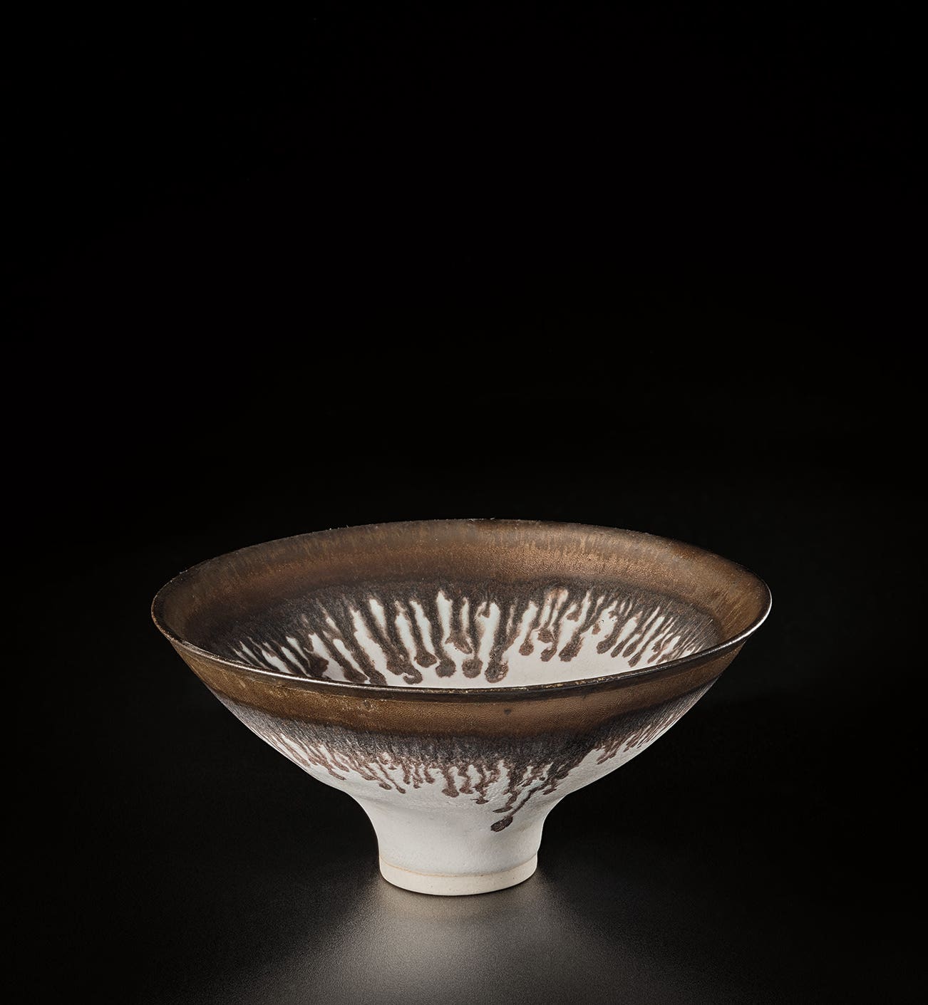 Austrian | B. 1902 D. 1995Dame Lucie Rie studied under Michael Powolny at the Kunstgewerbeschule in Vienna before immigrating to London in 1938. In London she started out making buttons for the fashion industry before producing austere, sparsely decorated tableware that caught the attention of modernist interior decorators. Eventually she hit her stride with the pitch-perfect footed bowls and flared vases for which she is best-known today. She worked in porcelain and stoneware, applying glaze directly to the unfired body and firing only once. She limited decoration to incised lines, subtle spirals and golden manganese lips, allowing the beauty of her thin-walled vessels to shine through. In contrast with the rustic pots of English ceramicist Bernard Leach, who is considered an heir to the Arts and Crafts movement, collectors and scholars revere Rie for creating pottery that was in dialogue with the design and architecture of European Modernism.