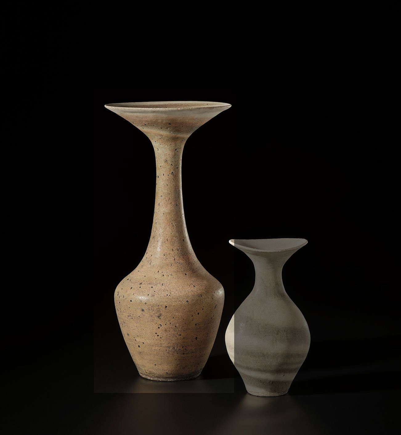 Austrian | B. 1902 D. 1995Dame Lucie Rie studied under Michael Powolny at the Kunstgewerbeschule in Vienna before immigrating to London in 1938. In London she started out making buttons for the fashion industry before producing austere, sparsely decorated tableware that caught the attention of modernist interior decorators. Eventually she hit her stride with the pitch-perfect footed bowls and flared vases for which she is best-known today. She worked in porcelain and stoneware, applying glaze directly to the unfired body and firing only once. She limited decoration to incised lines, subtle spirals and golden manganese lips, allowing the beauty of her thin-walled vessels to shine through. In contrast with the rustic pots of English ceramicist Bernard Leach, who is considered an heir to the Arts and Crafts movement, collectors and scholars revere Rie for creating pottery that was in dialogue with the design and architecture of European Modernism.