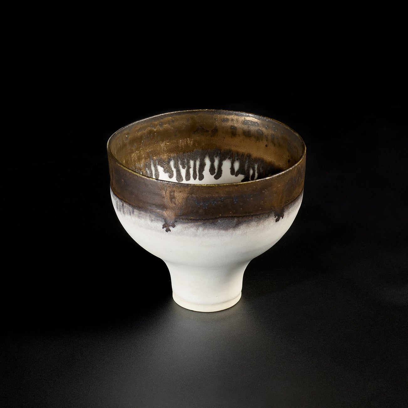 Austrian | B. 1902 D. 1995Dame Lucie Rie studied under Michael Powolny at the Kunstgewerbeschule in Vienna before immigrating to London in 1938. In London she started out making buttons for the fashion industry before producing austere, sparsely decorated tableware that caught the attention of modernist interior decorators. Eventually she hit her stride with the pitch-perfect footed bowls and flared vases for which she is best-known today. She worked in porcelain and stoneware, applying glaze directly to the unfired body and firing only once. She limited decoration to incised lines, subtle spirals and golden manganese lips, allowing the beauty of her thin-walled vessels to shine through. In contrast with the rustic pots of English ceramicist Bernard Leach, who is considered an heir to the Arts and Crafts movement, collectors and scholars revere Rie for creating pottery that was in dialogue with the design and architecture of European Modernism.
