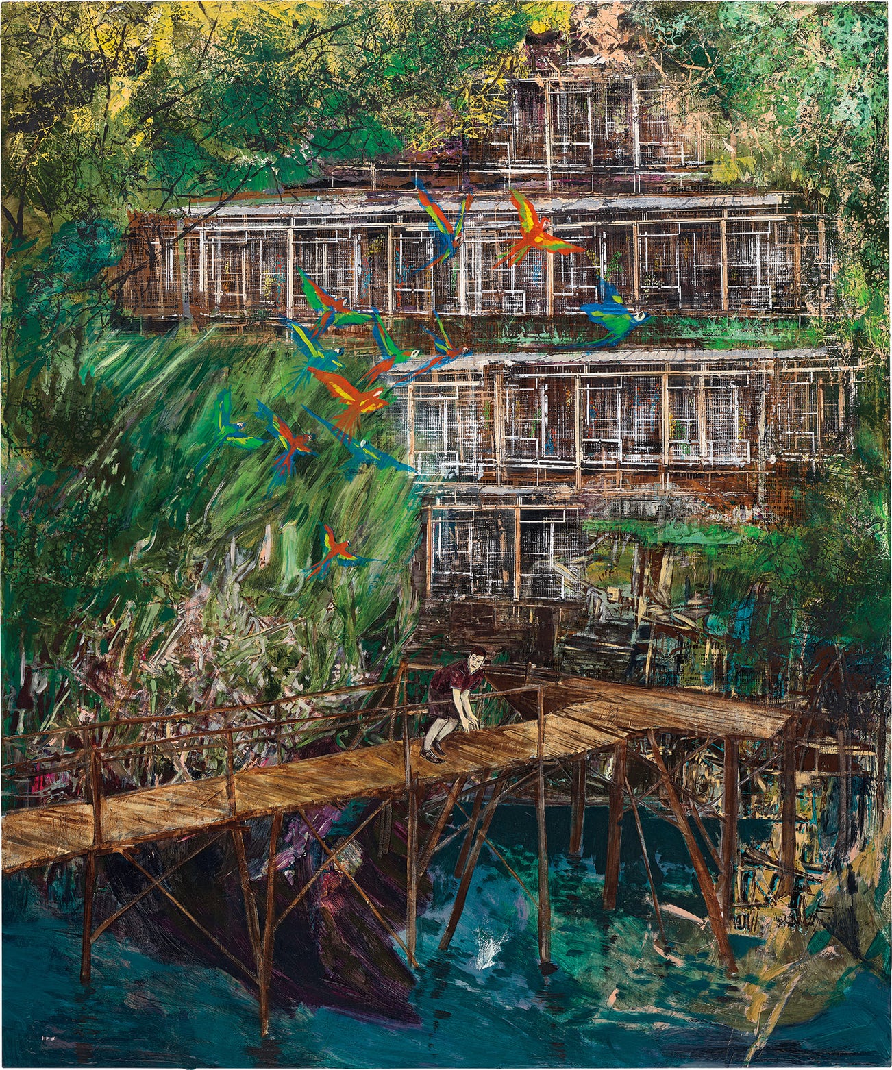 Hernan Bas (b.1978) is a contemporary American painter who lives and works in Miami. His paintings are influenced by the romantic and decadent legacies of 18th and 19th century art, literature, poetry, and religion. These influences result in canvases that are complex and highly detailed and often portray characters, typically young male figures, nestled among flora and fauna.