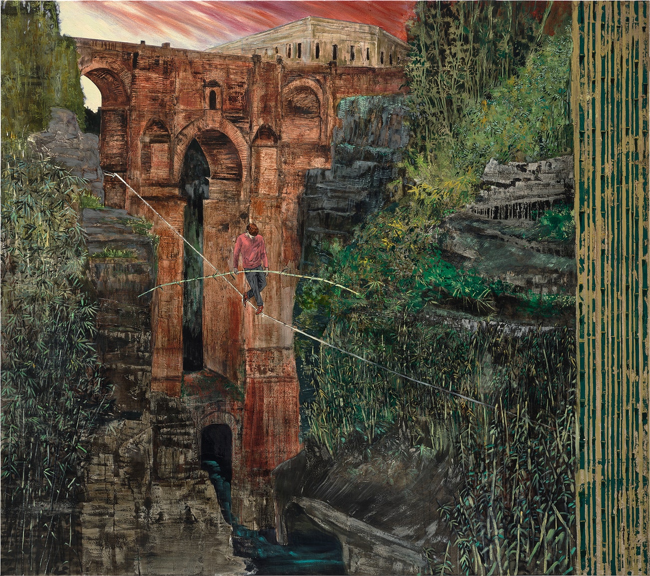 Hernan Bas (b.1978) is a contemporary American painter who lives and works in Miami. His paintings are influenced by the romantic and decadent legacies of 18th and 19th century art, literature, poetry, and religion. These influences result in canvases that are complex and highly detailed and often portray characters, typically young male figures, nestled among flora and fauna.